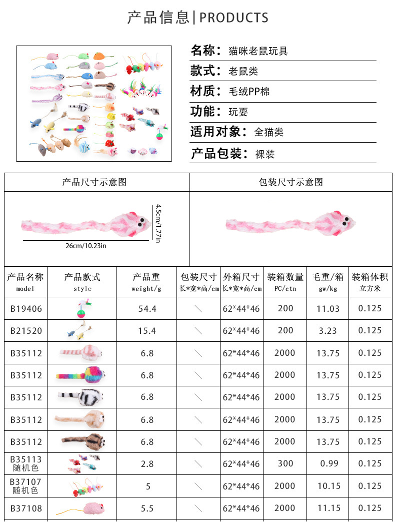 아마존 새로운 고양이 장난감 공장 플러시 허브 마우스 귀여운 모양 재미 고양이 애완 동물 장난감 재고 직접 판매스토어 가기