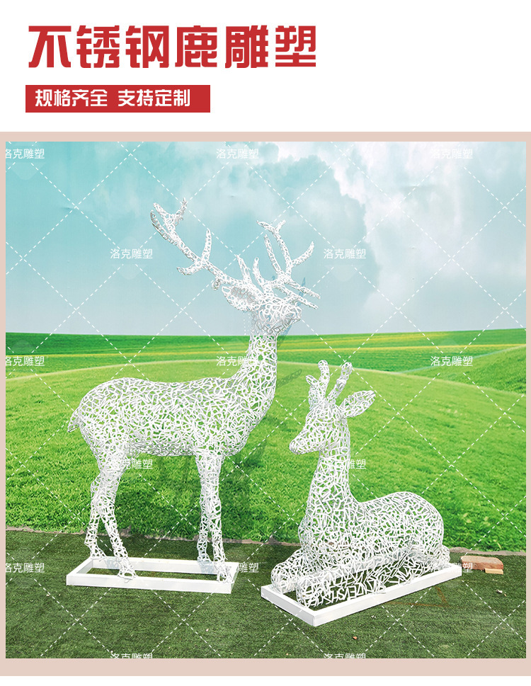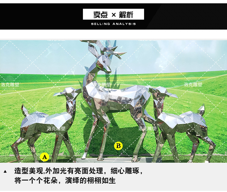 맞춤형 스테인리스 거울 조각품, 속이 빈 발광 사슴 조각품, 기하학적 절단면 사슴 스테인리스 동물 조각품스토어 가기