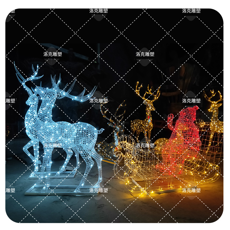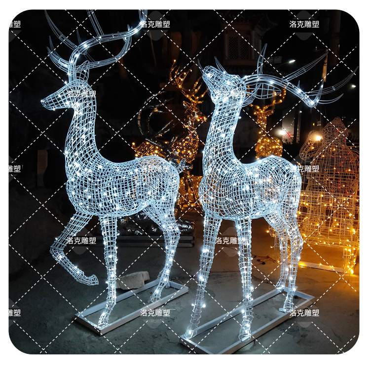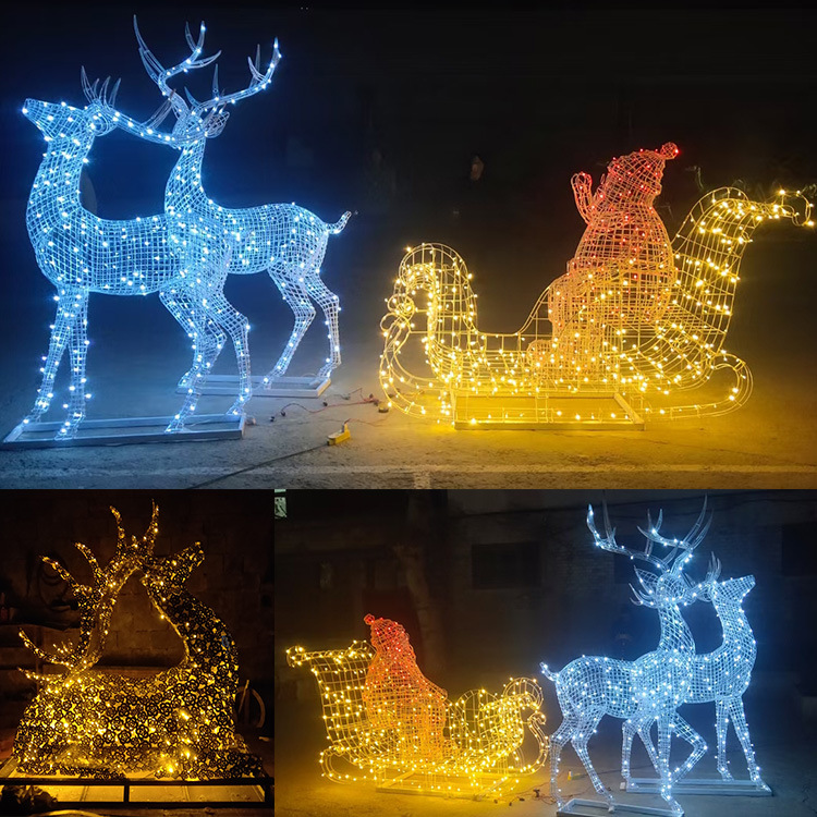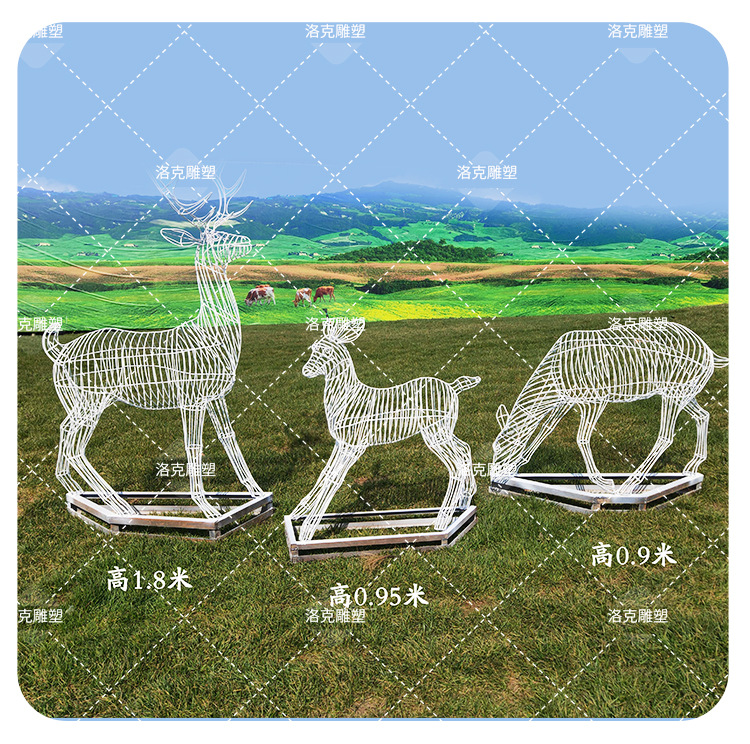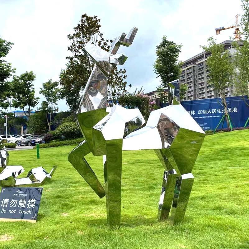 맞춤형 스테인리스 거울 조각품, 속이 빈 발광 사슴 조각품, 기하학적 절단면 사슴 스테인리스 동물 조각품