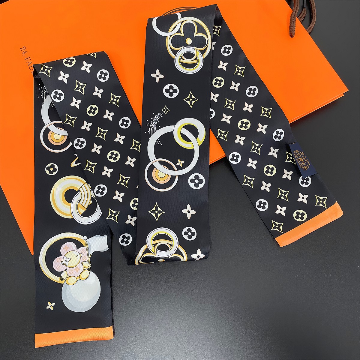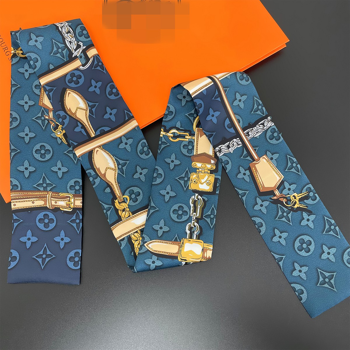 새로운 여름 흑백 체인 리본 실크 같은 오래된 꽃 넥타이 가방 좁은 실크 스카프 작은 긴 머리 밴드 여성용 헤어 타이스토어 가기