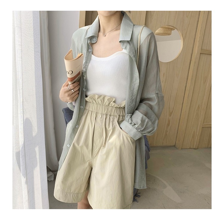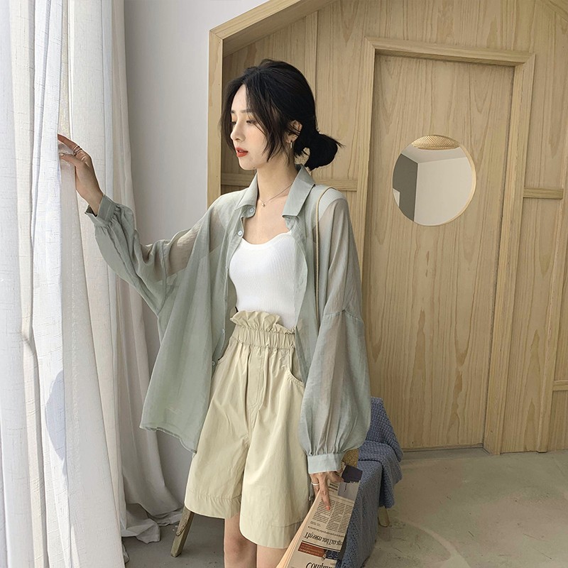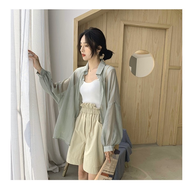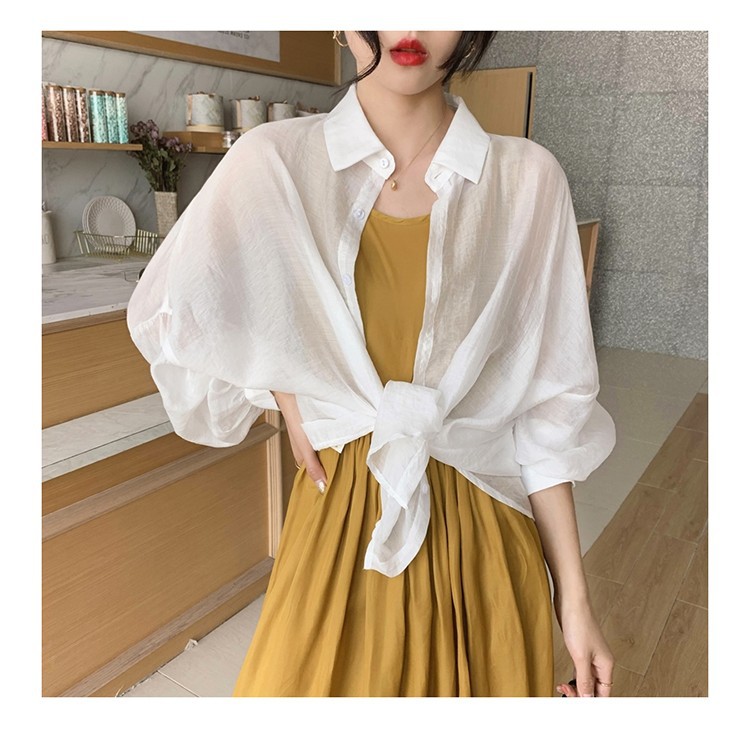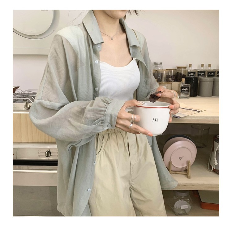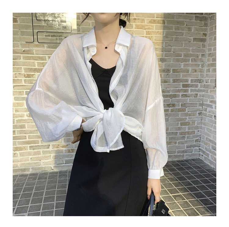중간 길이 자외선 차단제 셔츠 여자의 여름 긴팔 플러스 사이즈 투명 얇은 가디건 재킷 여자의 유행 모든 매치 탑스토어 가기
