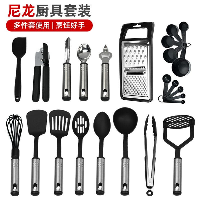 도매 나일론 스테인레스 스틸 가정용 주방 용품 볶음 삽 숟가락 세트 요리 도구 전체 세트 요리 주방 도구스토어 가기