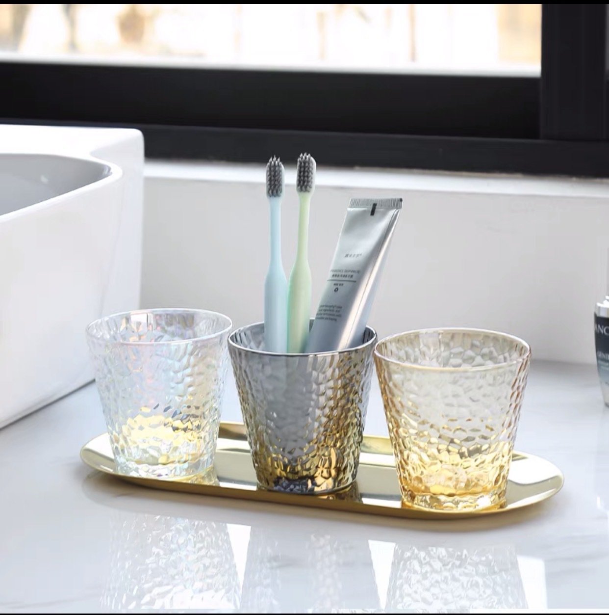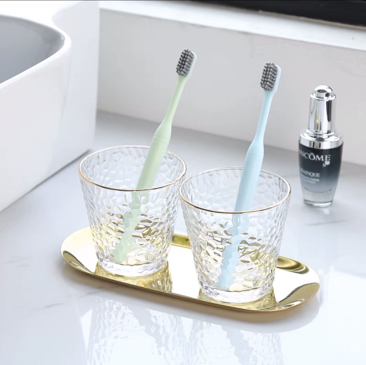 유럽 스타일 인 스타일 골드 해머 패턴 컵 호텔 양치질 컵 고급 유리 컵 북유럽 칫솔질 및 세척 컵