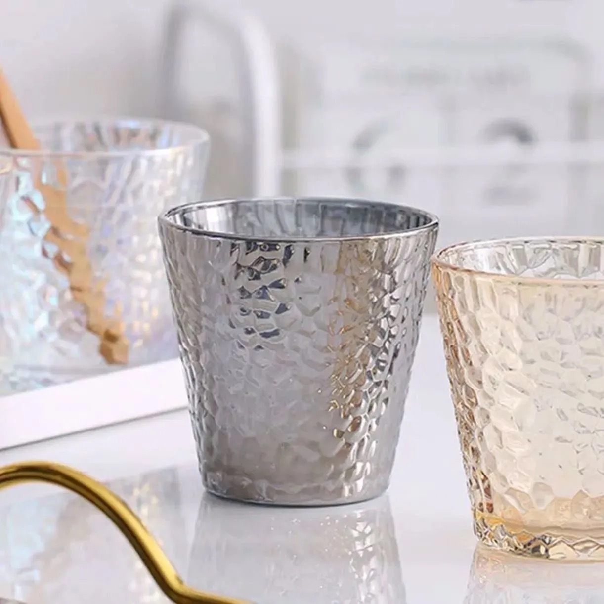 유럽 스타일 인 스타일 골드 해머 패턴 컵 호텔 양치질 컵 고급 유리 컵 북유럽 칫솔질 및 세척 컵스토어 가기