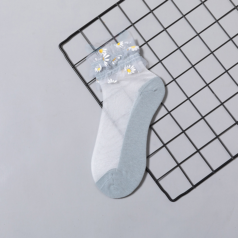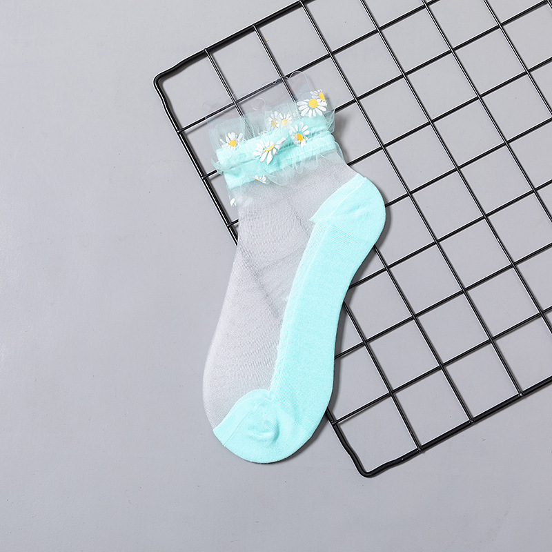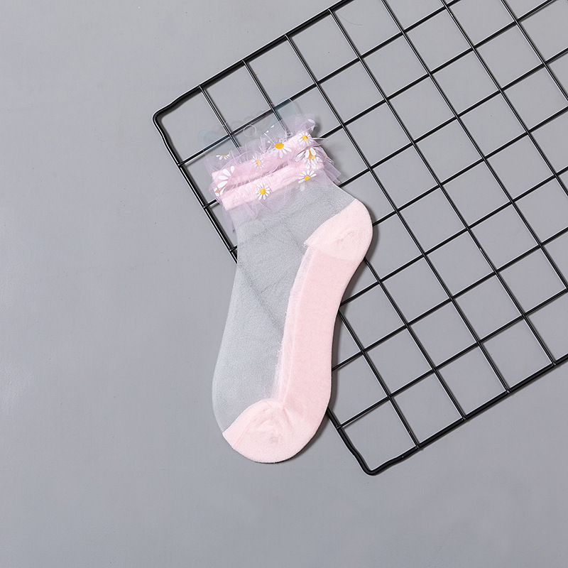 핸드 스티치 데이지 유리 스타킹 그물 레드 크리스탈 실크 양말 여성용 여름 얇은 메쉬 공주 레이스 보트 양말스토어 가기