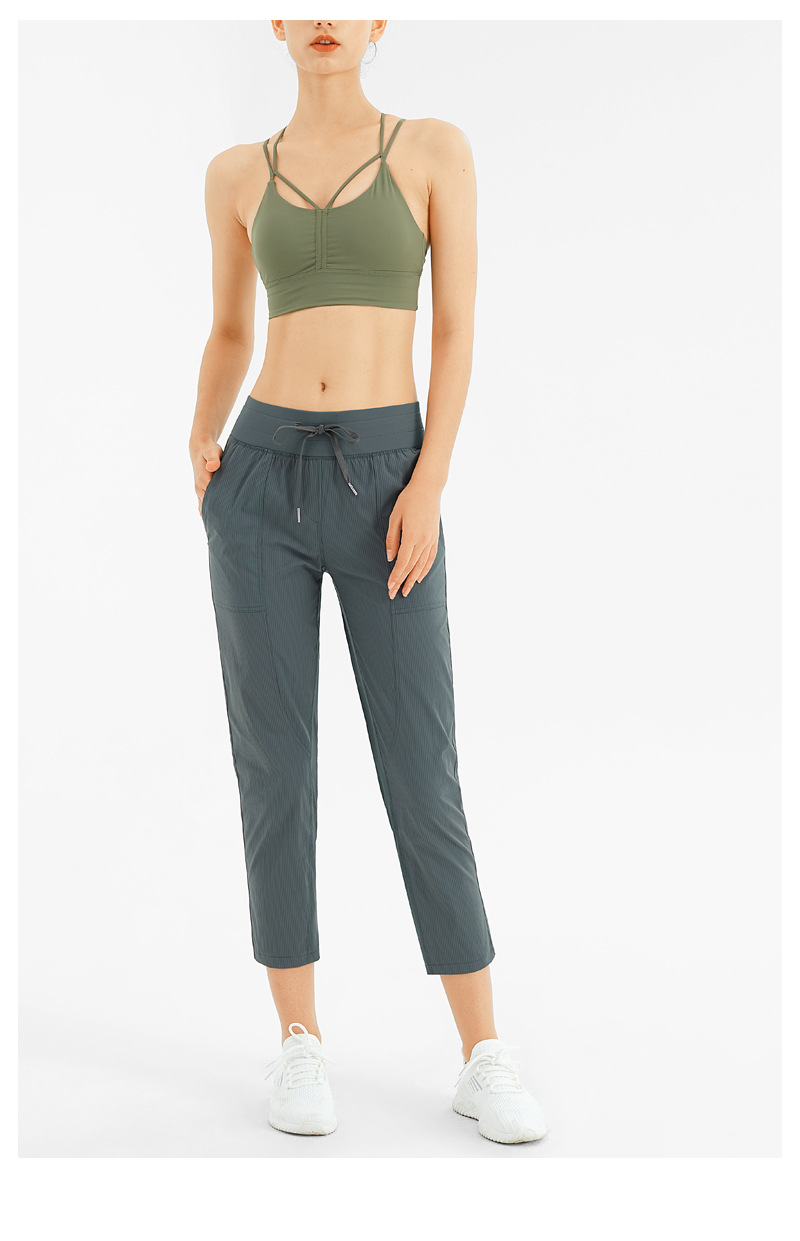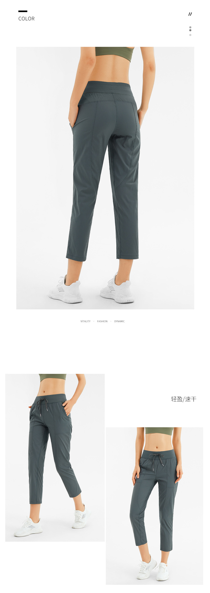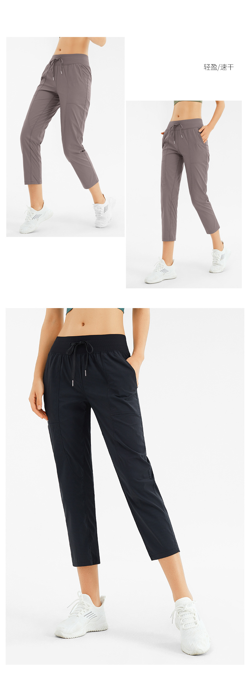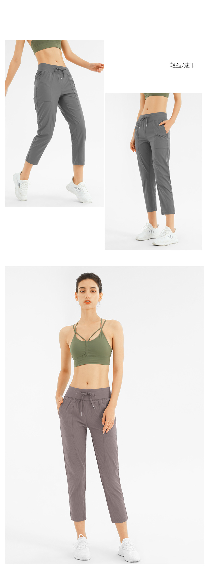 INFLACHI 스포츠 캐주얼 바지 여성용 통기성 속건성 드로스트링 루즈 요가 바지 러닝 피트니스 8부 바지