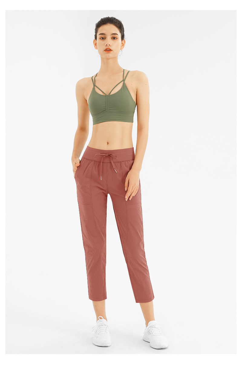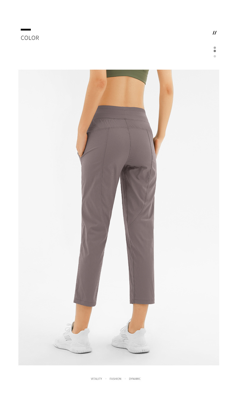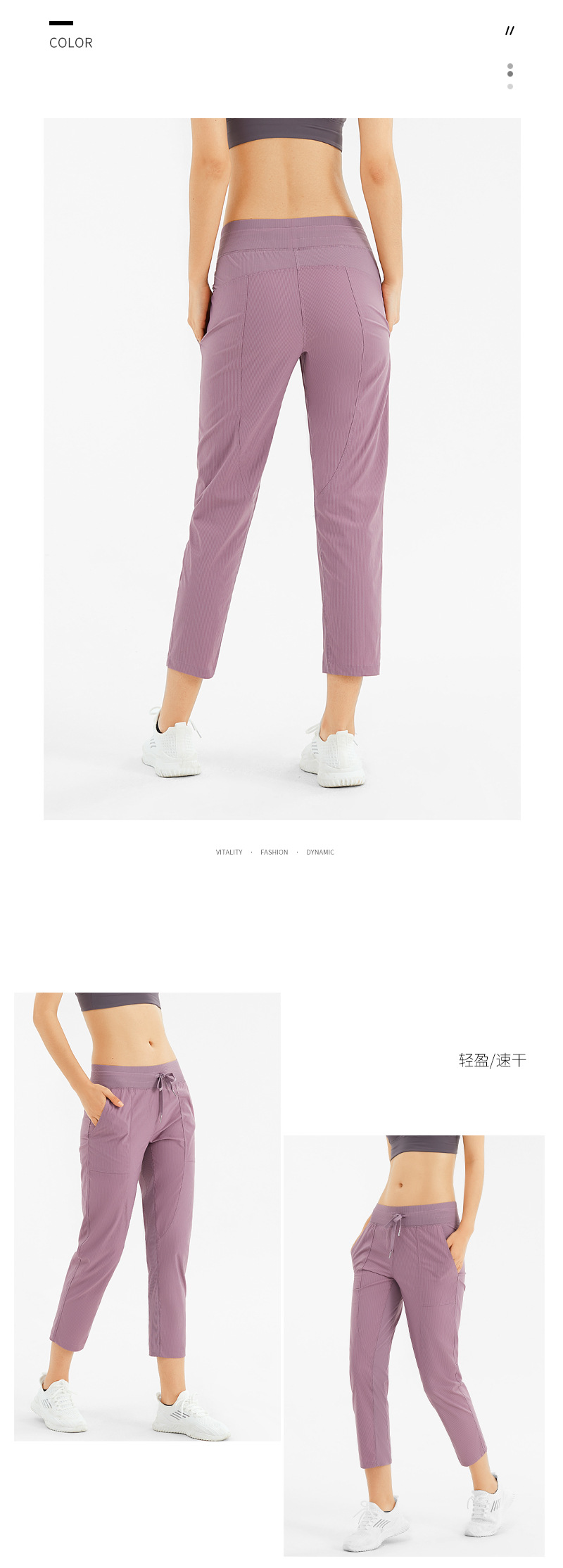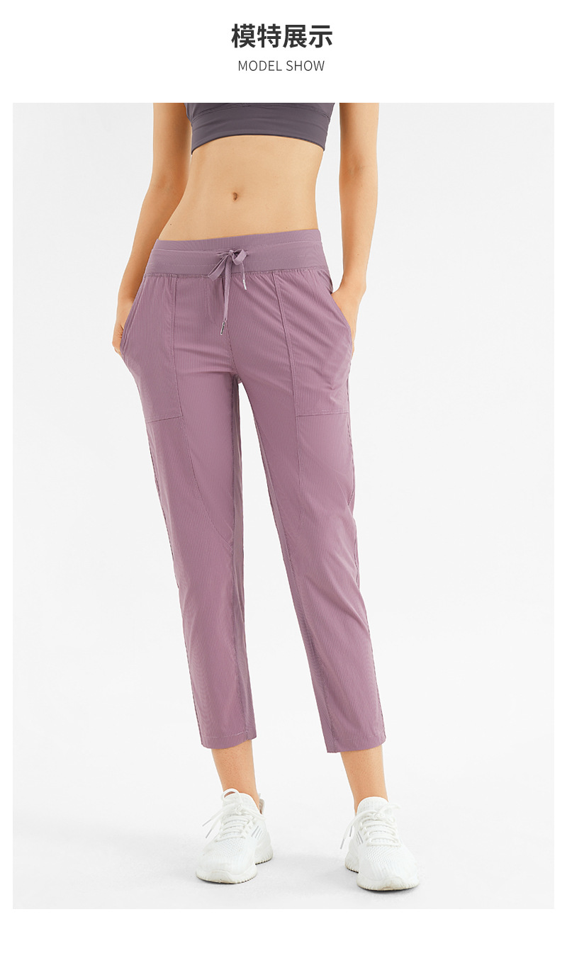 INFLACHI 스포츠 캐주얼 바지 여성용 통기성 속건성 드로스트링 루즈 요가 바지 러닝 피트니스 8부 바지