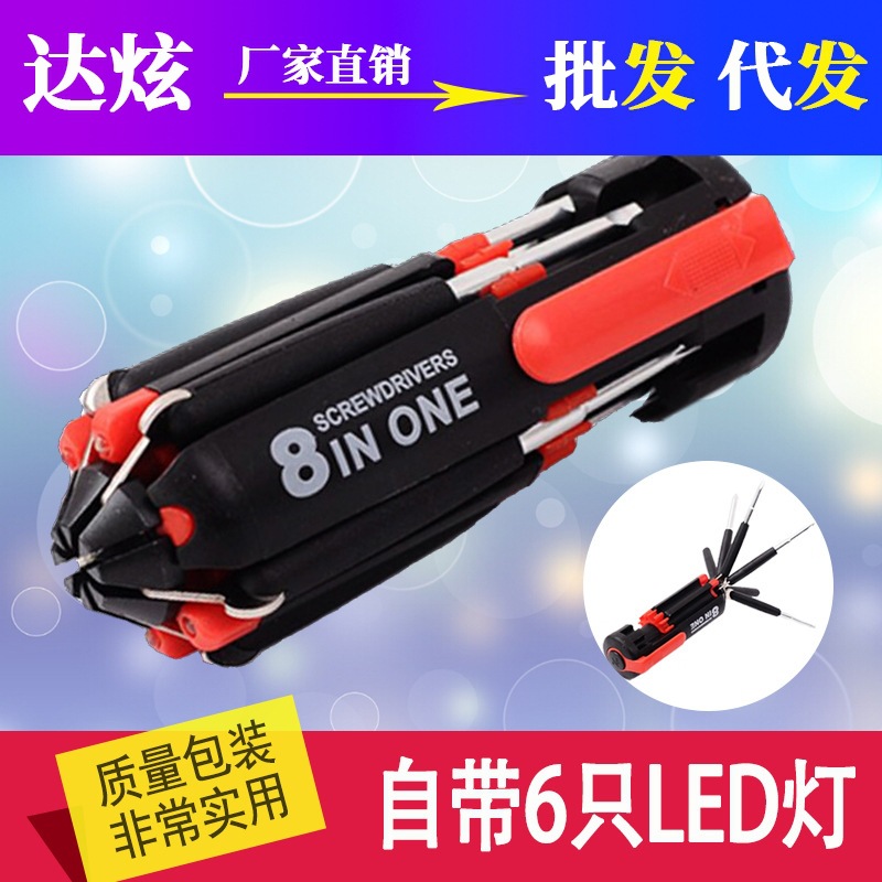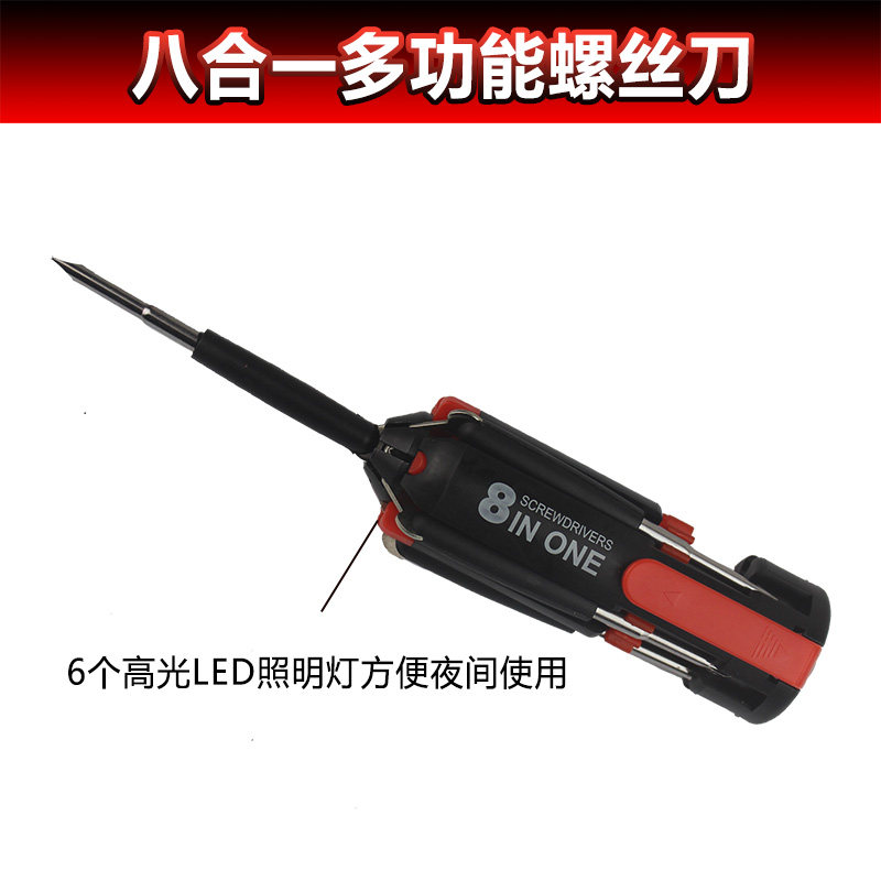 概要: 五金工具 八合一多功能十字螺丝刀 一字套装组合 带LED灯 汽车用,量大从优,欢迎各地经销商前来采购。