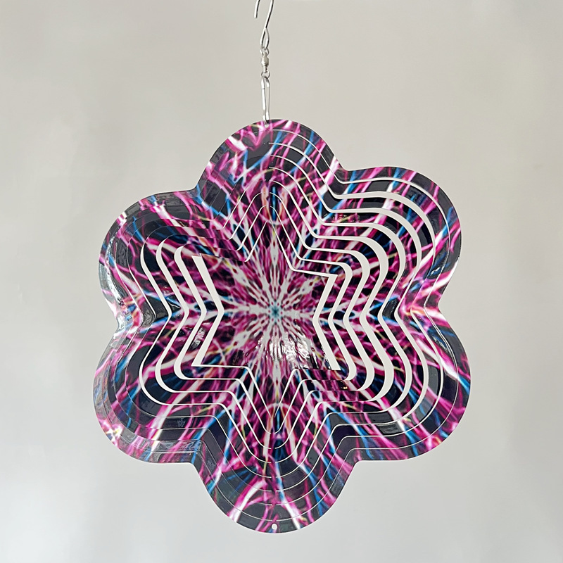 我们的花朵风转盘可以悬挂在灯光、树木、墙壁、阳台、窗户、花园上。 当随风旋转和折射生动形状的阳光时,这是一种艺术。