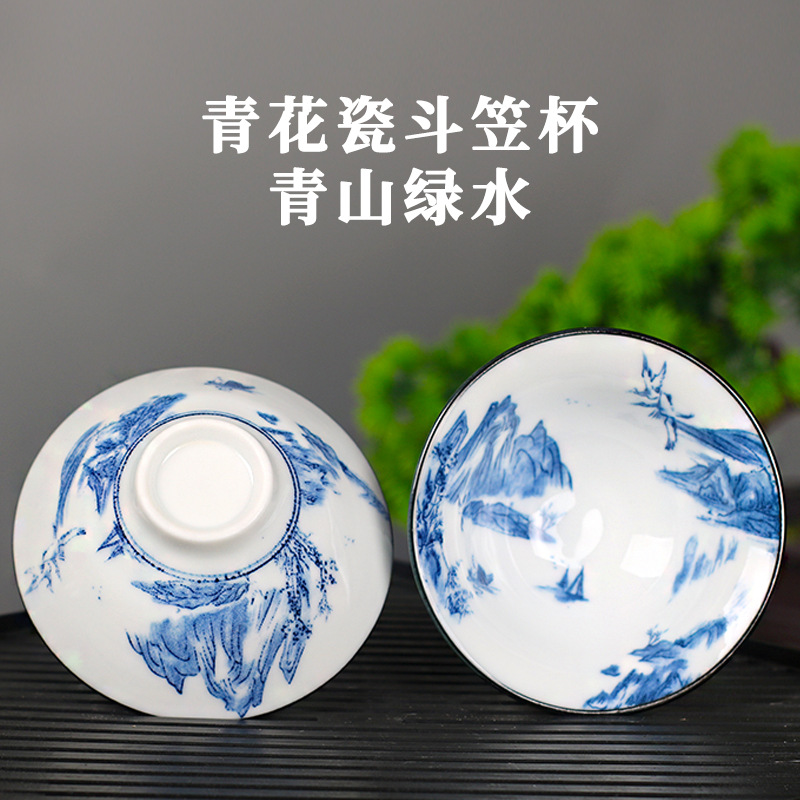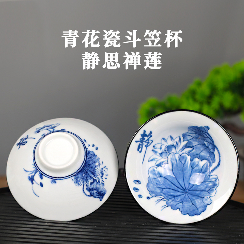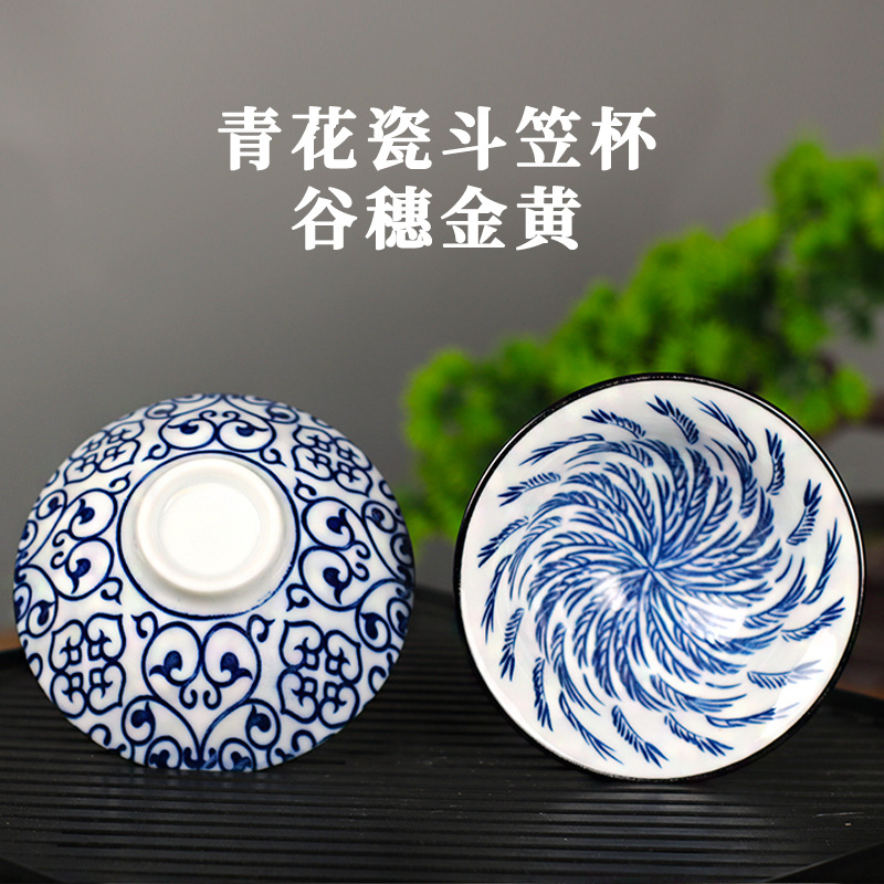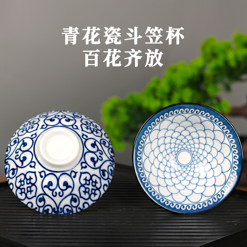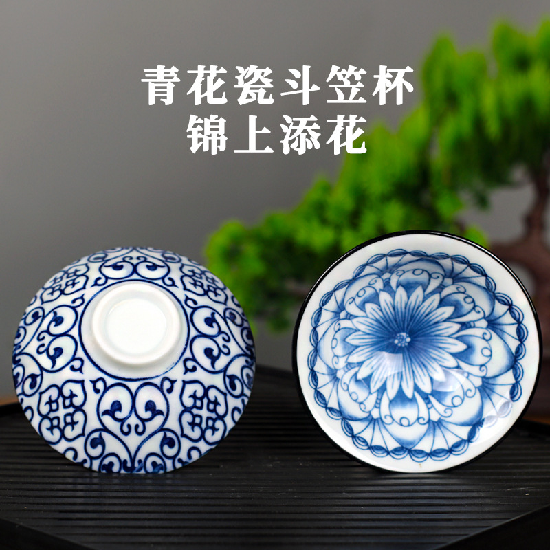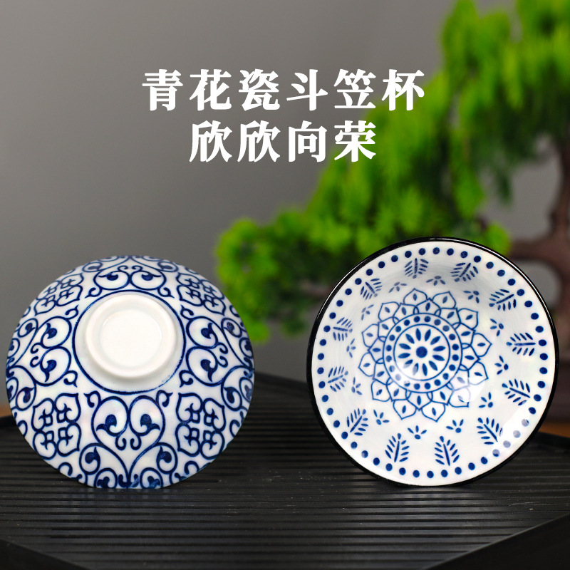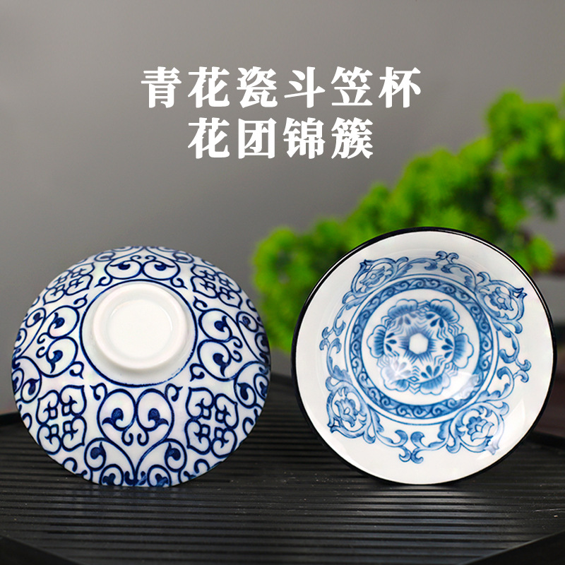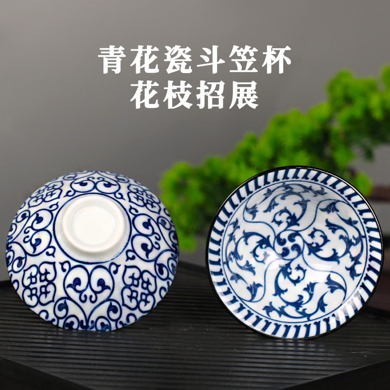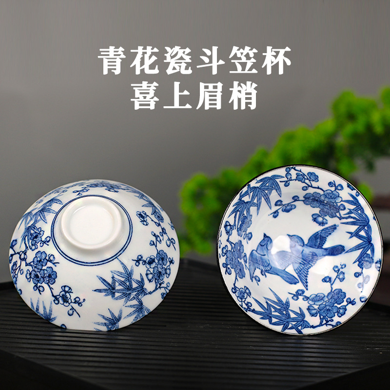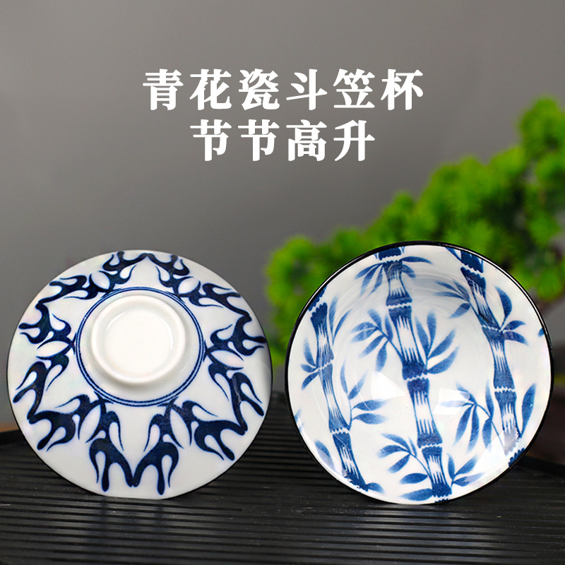 노래 레트로 블루와 화이트 도자기 찻잔 대 도자기 찻잔 소 1 잔 찻잔 대나무 모자 1 잔 찻그릇 도매스토어 가기