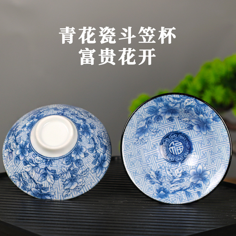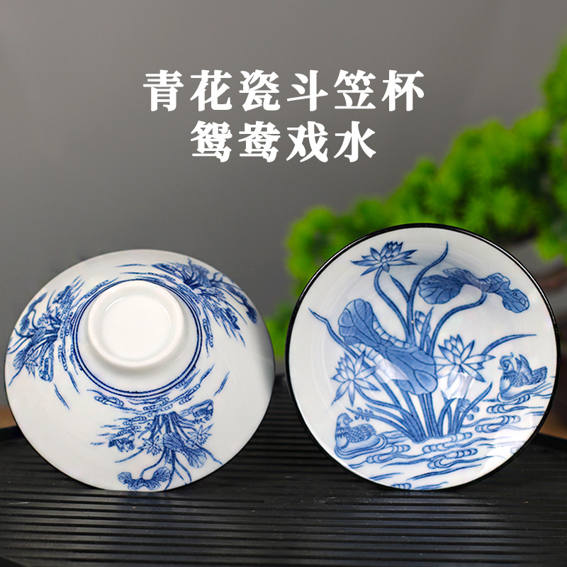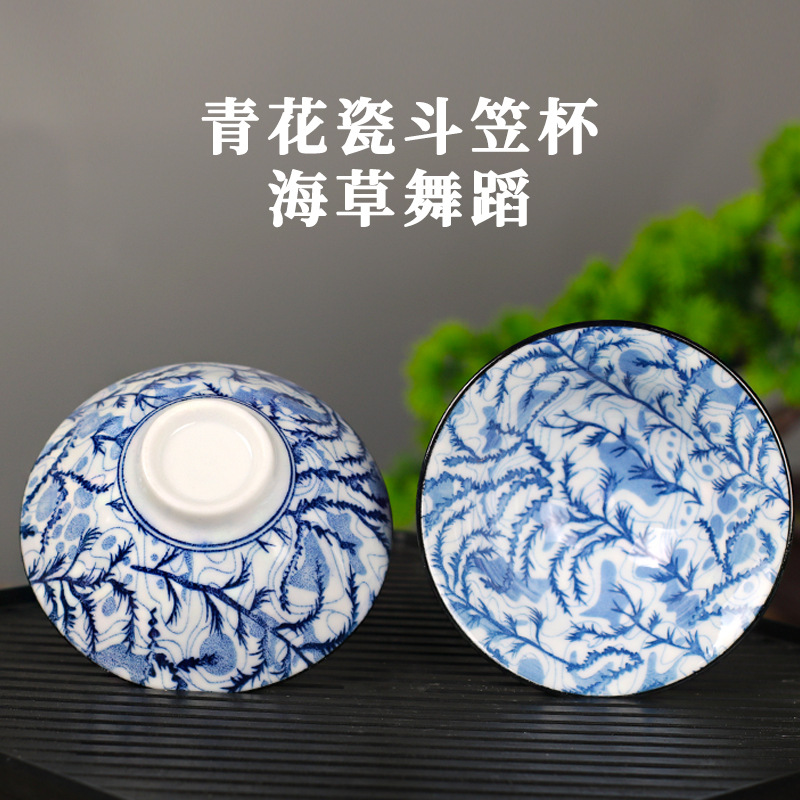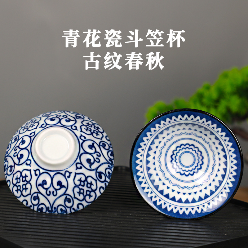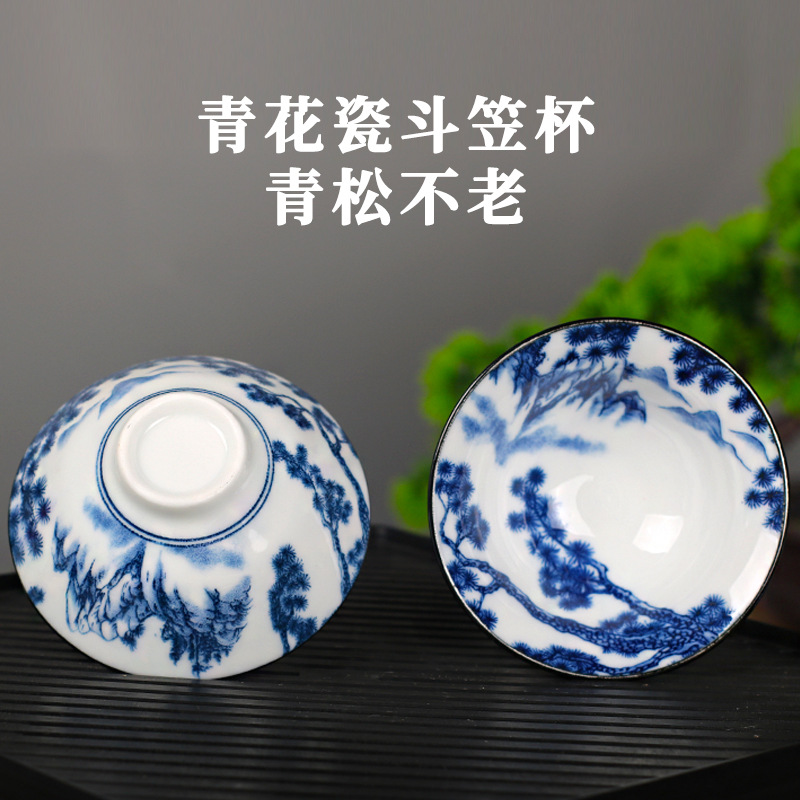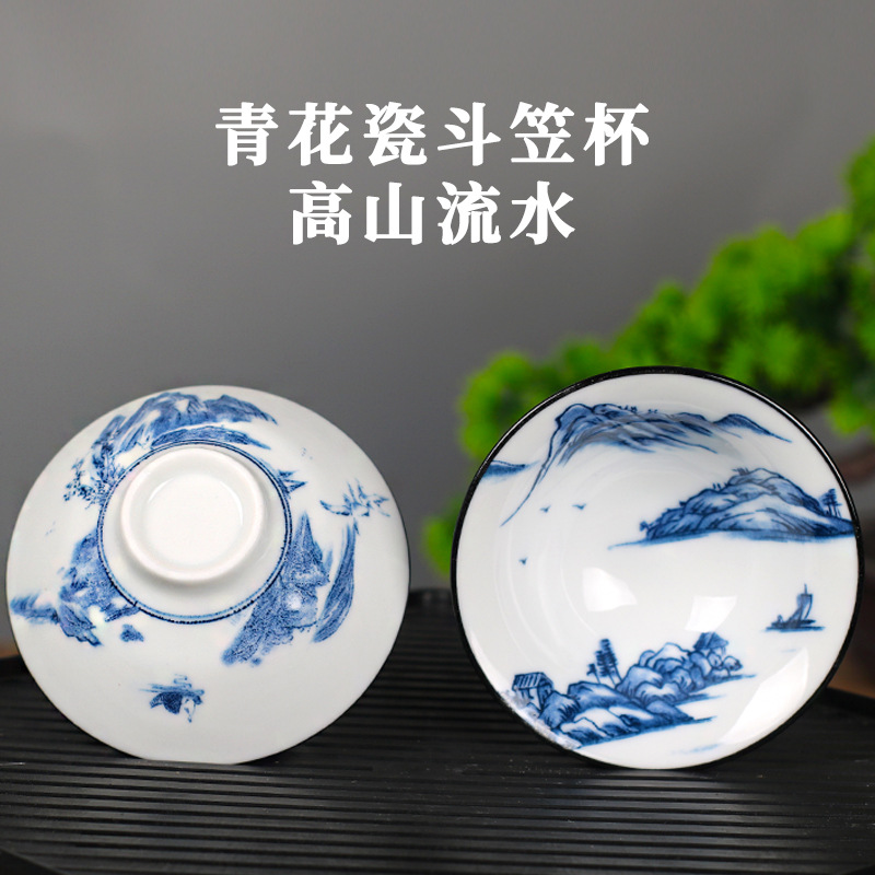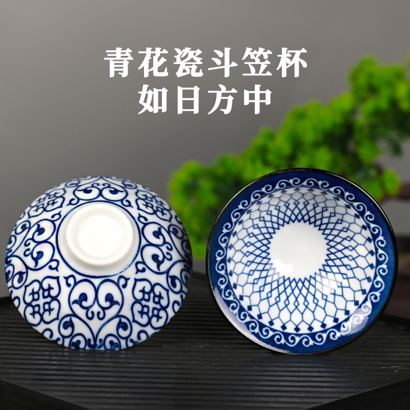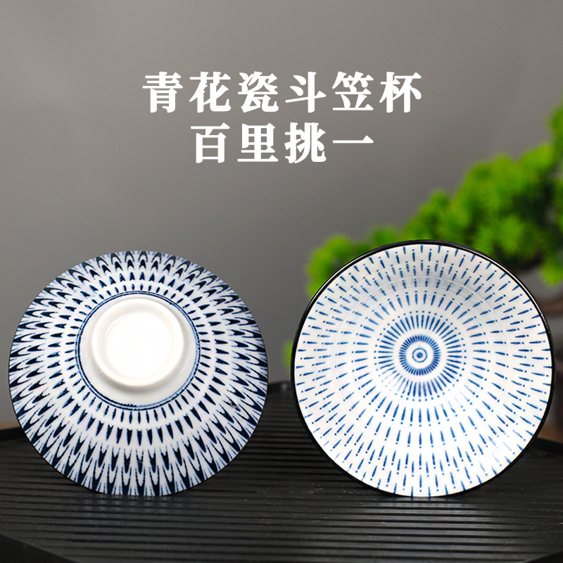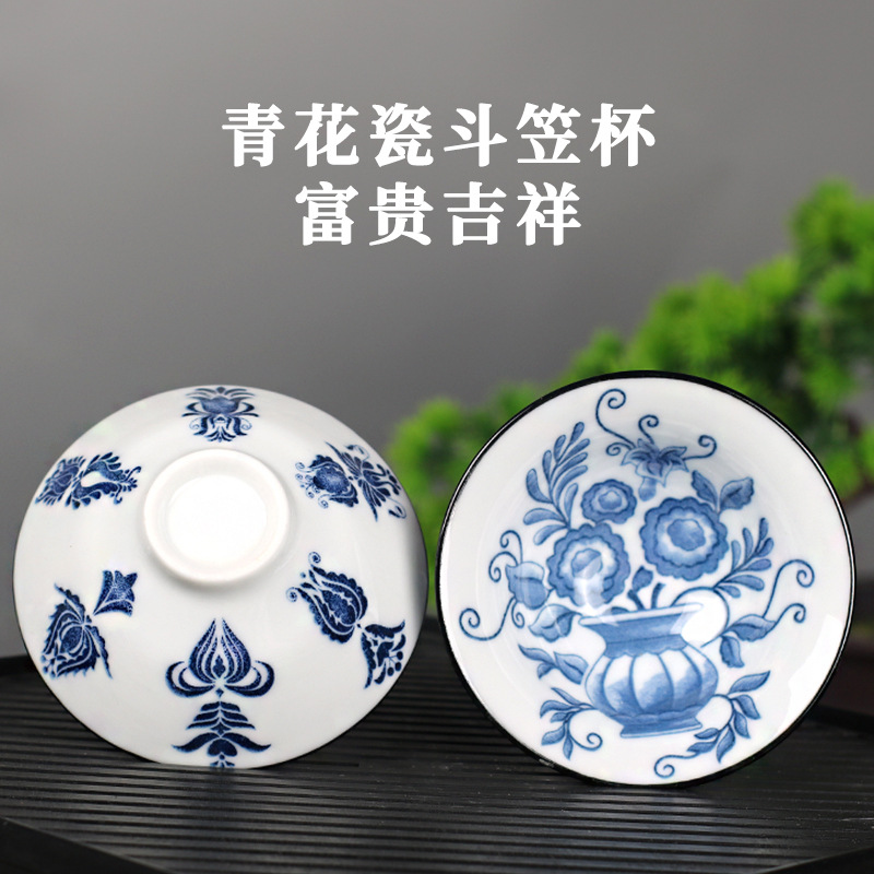 노래 레트로 블루와 화이트 도자기 찻잔 대 도자기 찻잔 소 1 잔 찻잔 대나무 모자 1 잔 찻그릇 도매스토어 가기