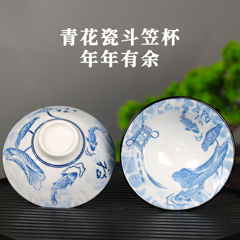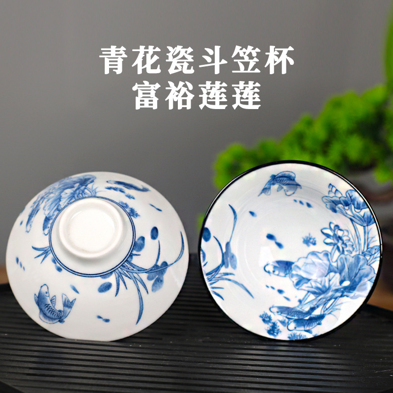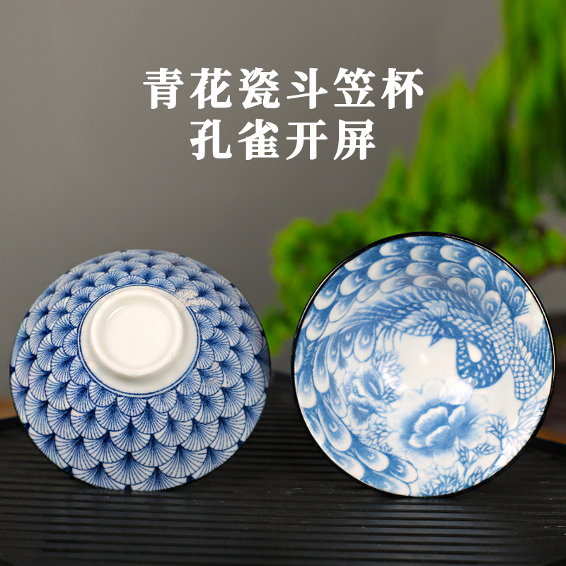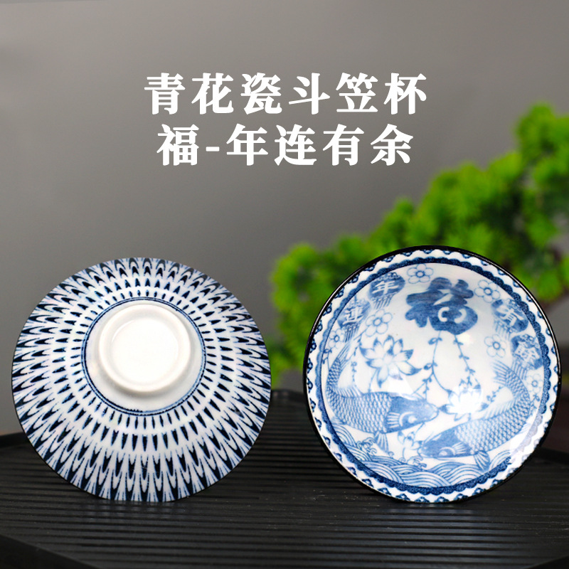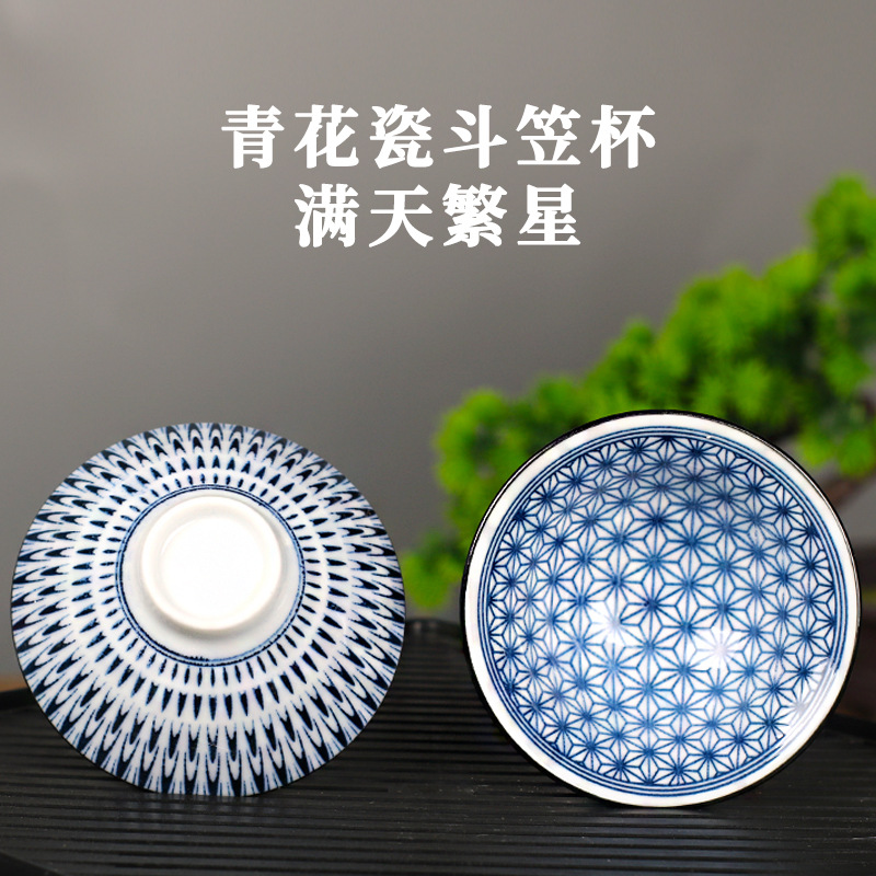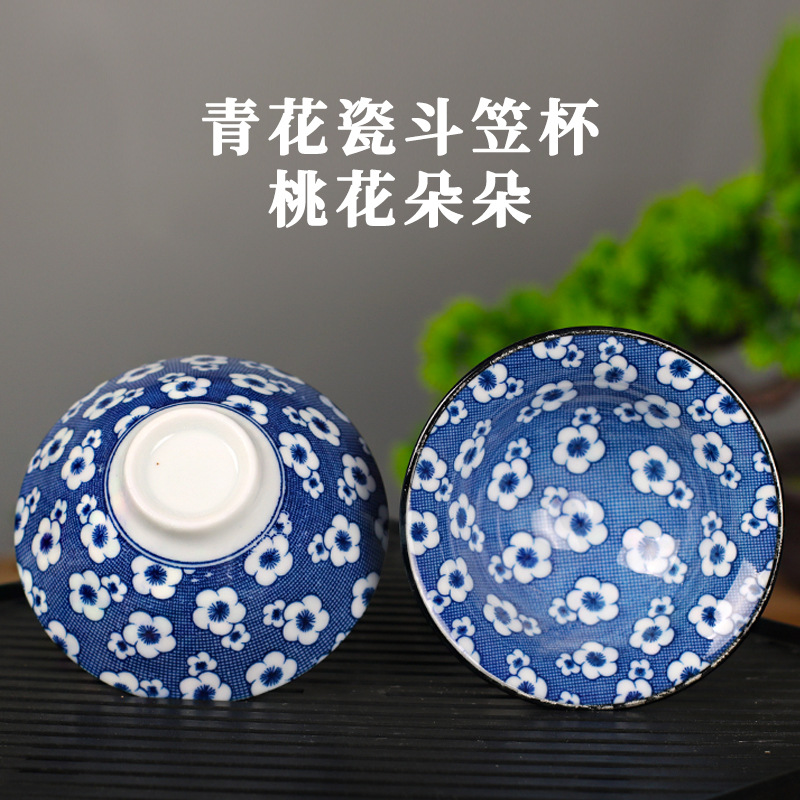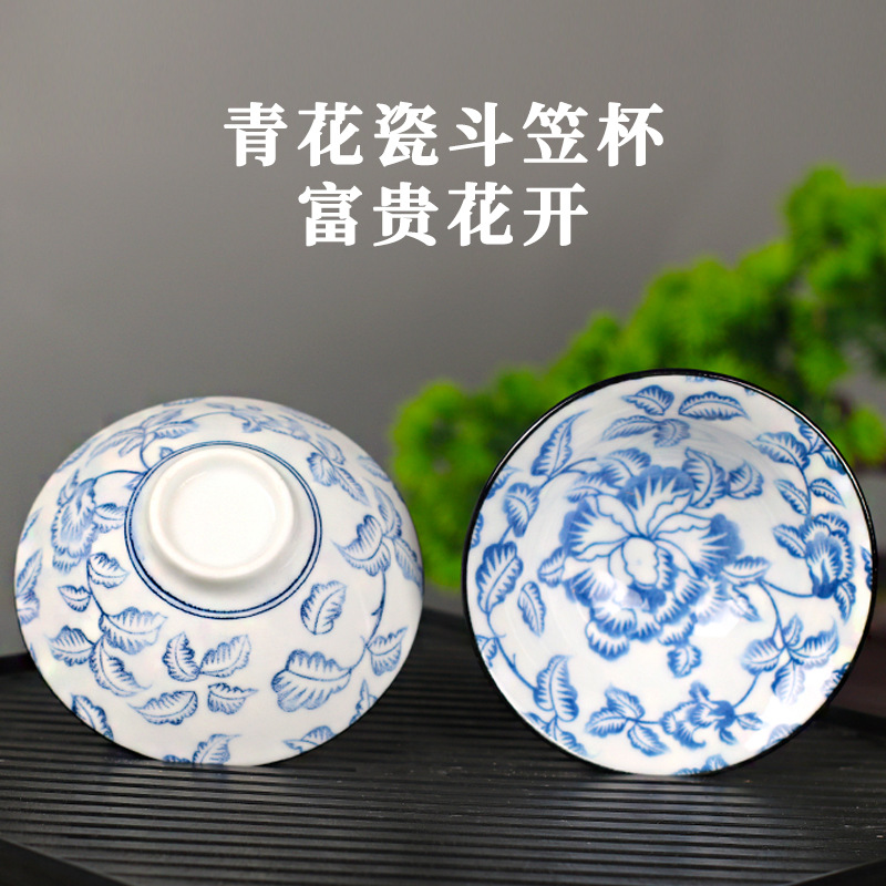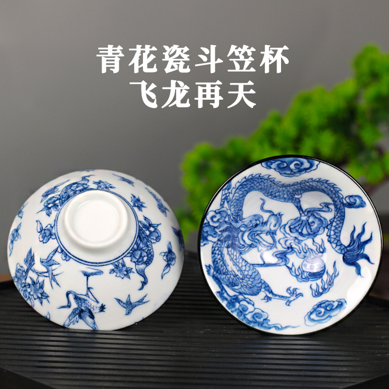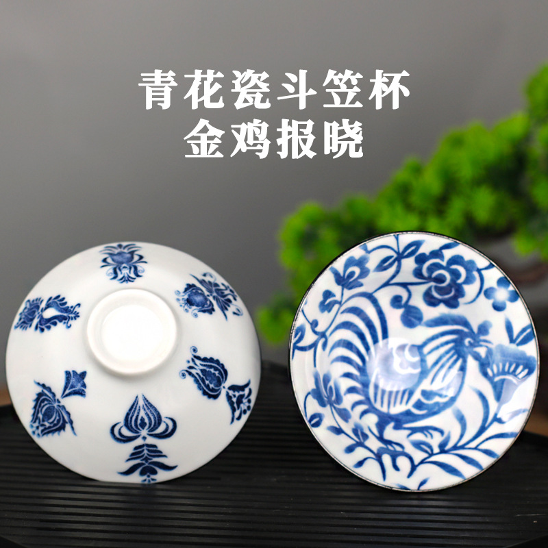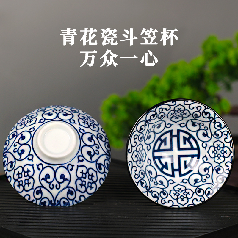 노래 레트로 블루와 화이트 도자기 찻잔 대 도자기 찻잔 소 1 잔 찻잔 대나무 모자 1 잔 찻그릇 도매스토어 가기