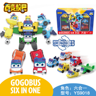버라이어티 스쿨 버스 어린이 차 소년 변형 로봇 스쿨 버스 괴테 소방 경찰차 6 대 1 장난감