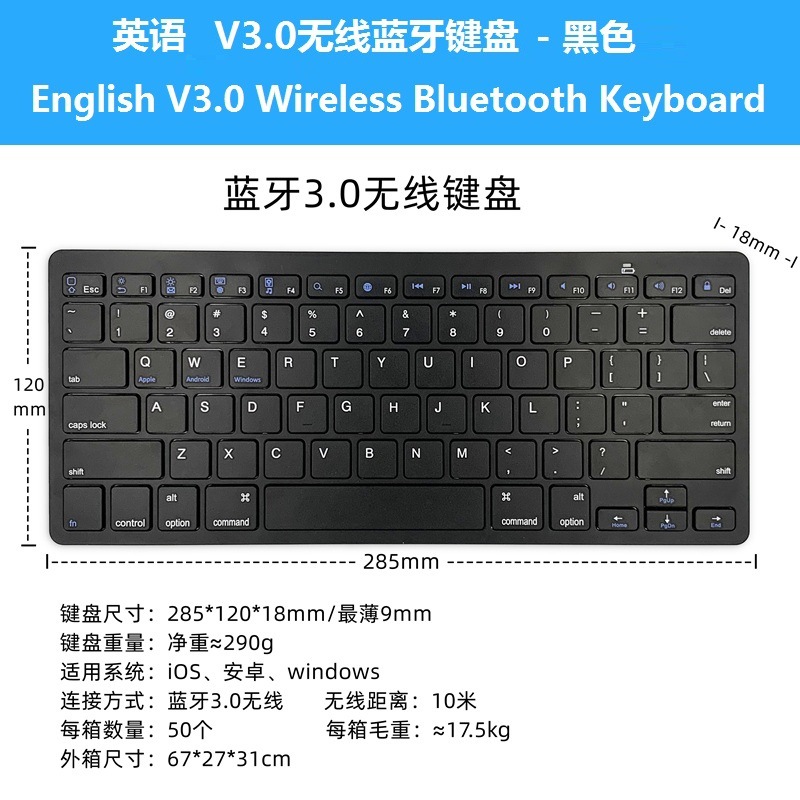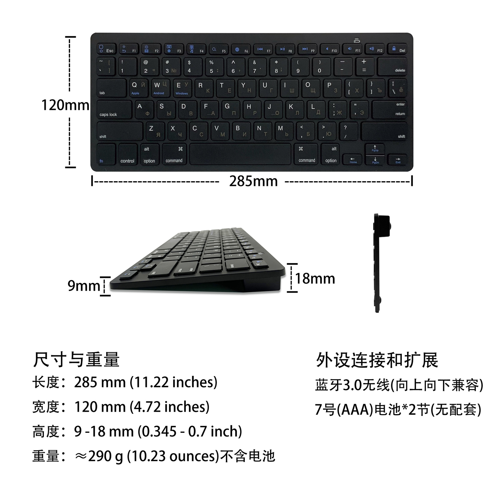 V3.0 무선 블루투스 키보드 영어 스페인어 포르투갈어 프랑스어 러시아어 이탈리아어 독일어 무선 키보드