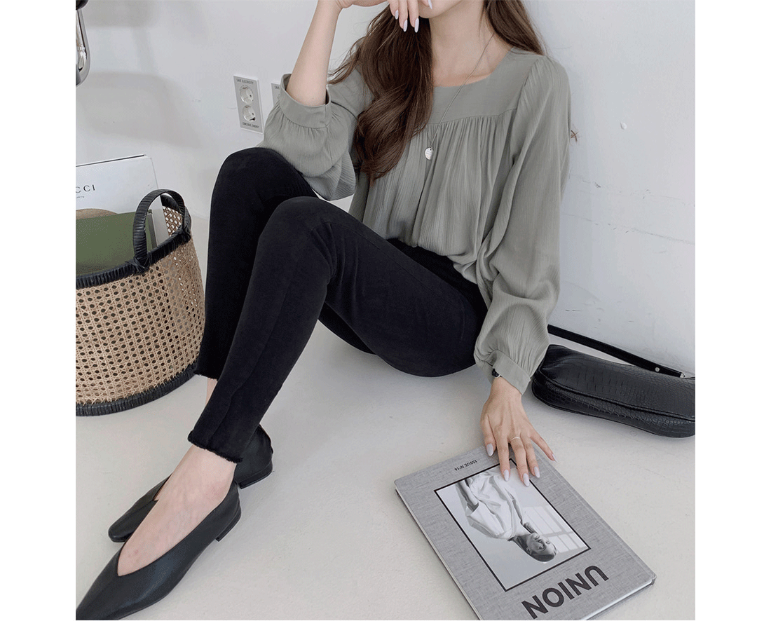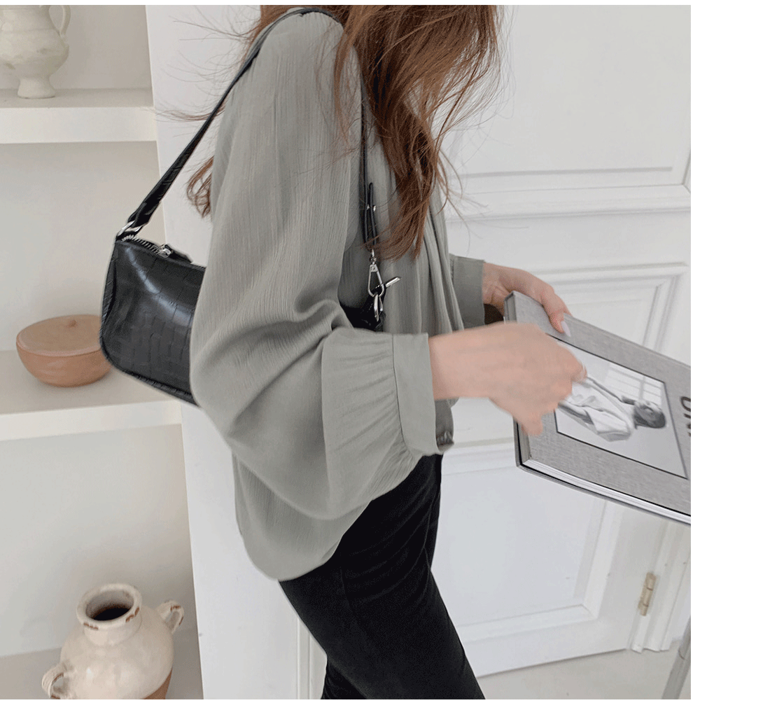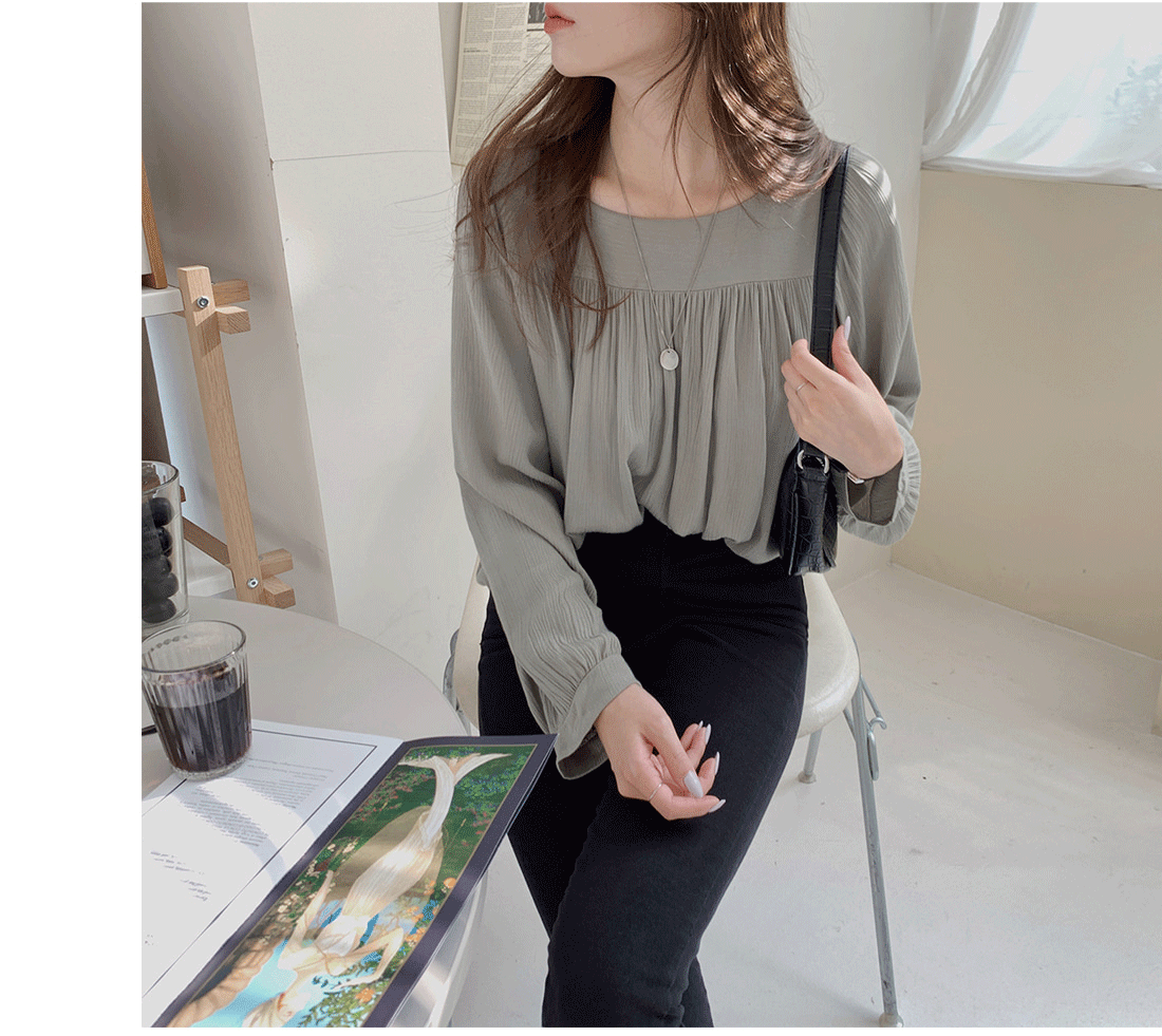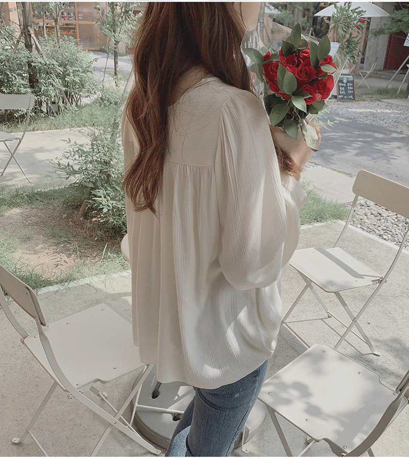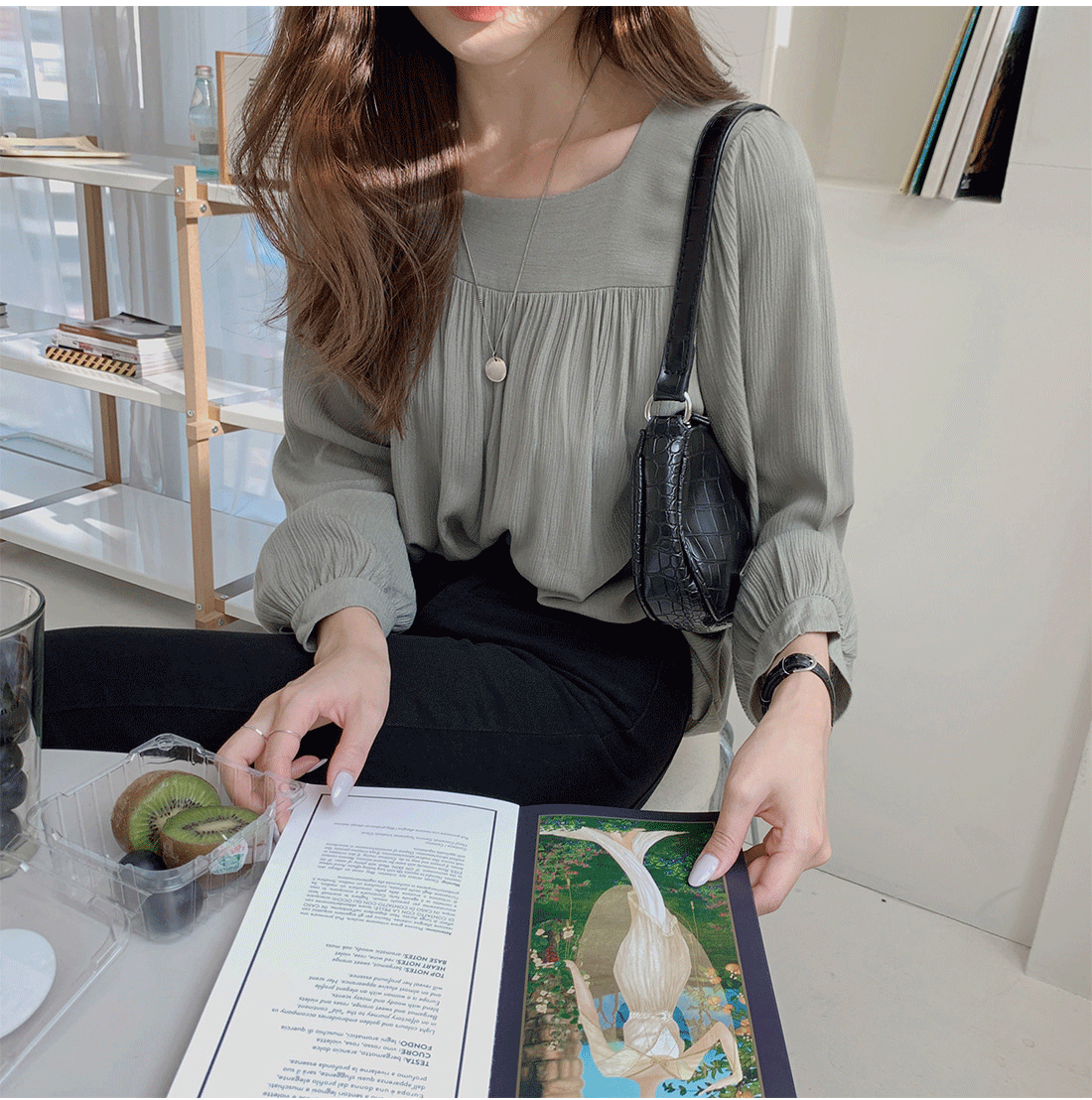 봄과 가을 새로운 긴팔 느슨한 스퀘어 넥 퍼프 슬리브 셔츠 여성 디자인 틈새 패션 쉬폰 셔츠스토어 가기