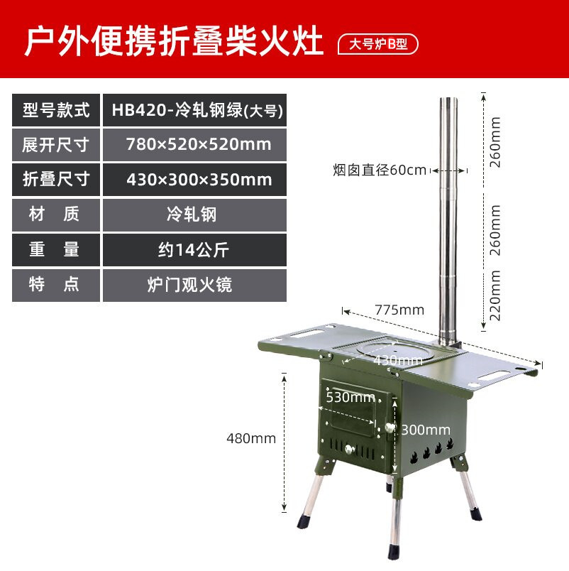 야외 휴대용 난방 목재 스토브 야외 캠핑 텐트 스토브 스테인레스 스틸 목재 스토브 자동 운전 바베큐 스토브