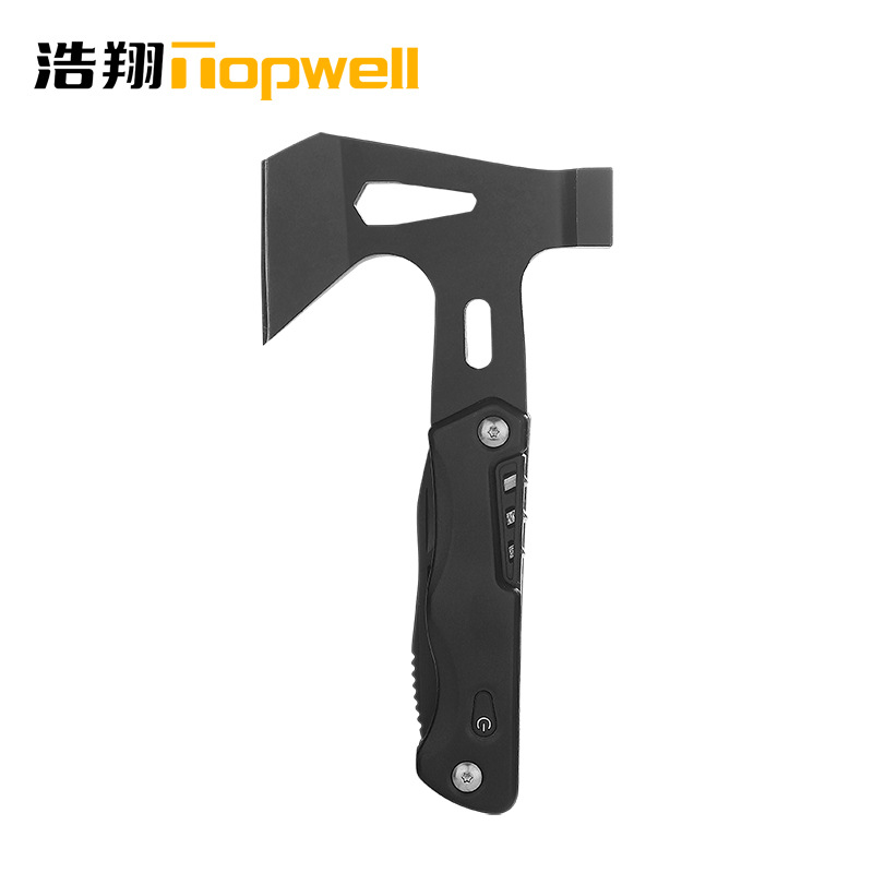공장 재고 블랙 중간 다기능 도끼 야외 생존 안전 망치 LED 조명 다목적 도끼 망치