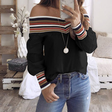 亚马逊速卖通新款爆版外贸跨境露肩印花针织拼接上衣衬衫 现货