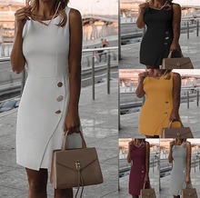 现货跨境wish亚马逊速卖通2020夏季固体无袖纯色气质连衣裙女