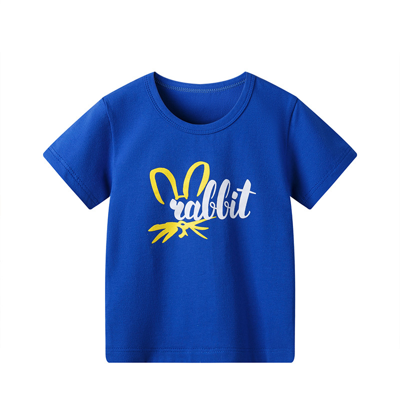 여름 신제품 아동용 반팔 티셔츠 면 멀티 컬러 반응성 인쇄 및 염색 캐주얼 티셔츠 소년 소녀 통기성 피부 친화적스토어 가기