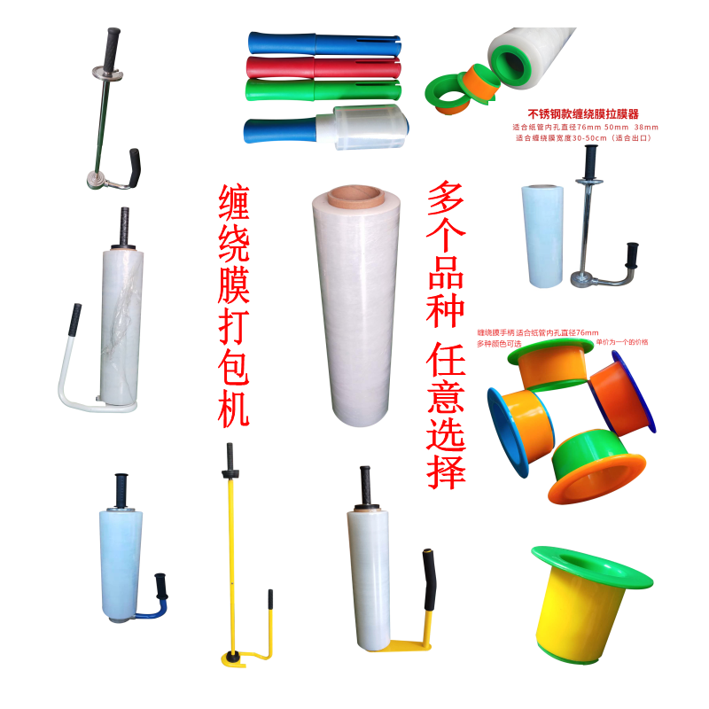 缠绕膜手柄:适合纸管内孔直径76mm,颜色有深蓝色,天蓝色,草绿色;重量一个大约40克;装箱:塑料手柄300个/箱
