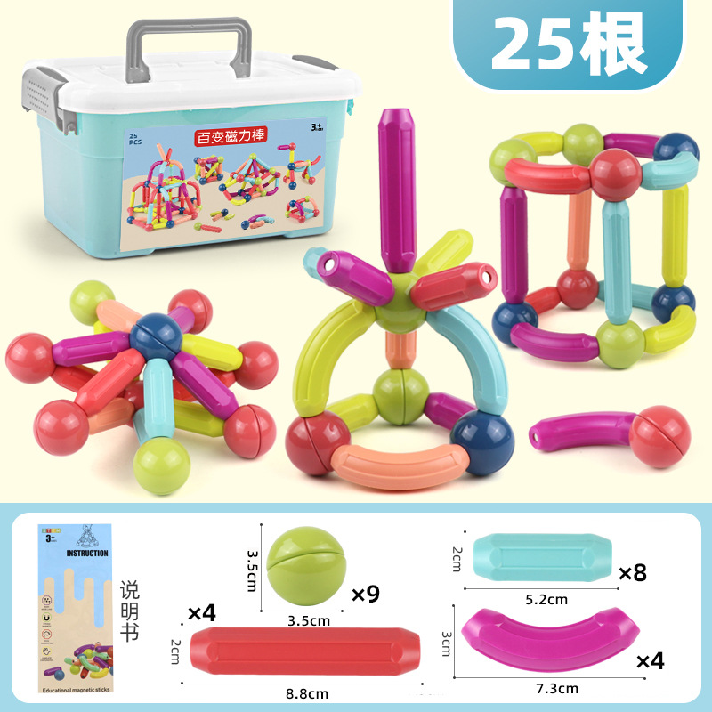 크로스 보더 마그네틱 바 도매 어린이 조기 교육 장난감 변경 가능한 남성과 여성의 DIY 조립 대형 입자 자기 빌딩 블록