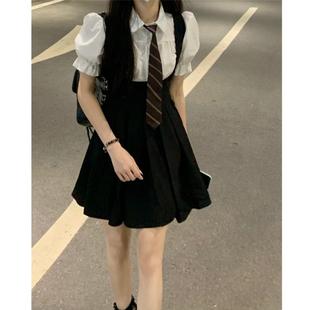프랑스 공주 원피스 세트 퍼프 슬리브 우아한 레이스 셔츠 스트랩 원피스 조끼 원피스 달콤한 투피스 세트
