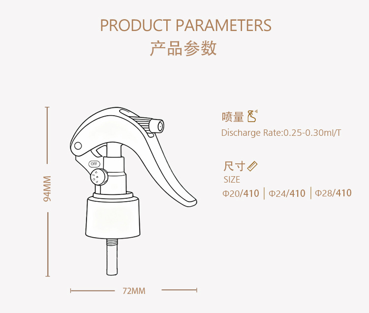 24개의 흰색 연속 분사 노즐이 있는 20구경 잠금식 플라스틱 스프레이건(손잡이형) 공급