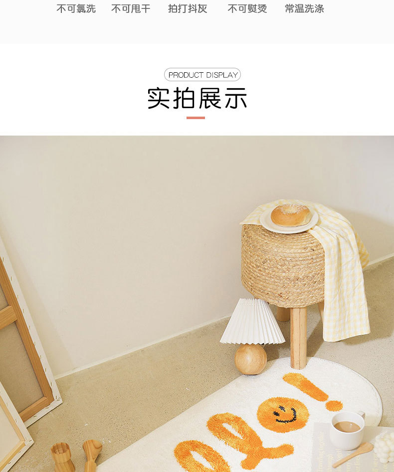 한국 스마일리 침실 카펫 만화 타원형 침대 옆 어린이방 다다미 매트 세탁 가능 초부드러운 소재