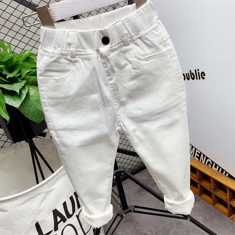 남아 바지 가을 새 2023 작은 다리 어린이 서양식 흑백 탄성 슬림 핏 데님 바지스토어 가기