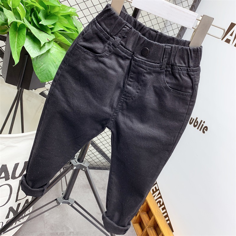 남아 바지 가을 새 2023 작은 다리 어린이 서양식 흑백 탄성 슬림 핏 데님 바지