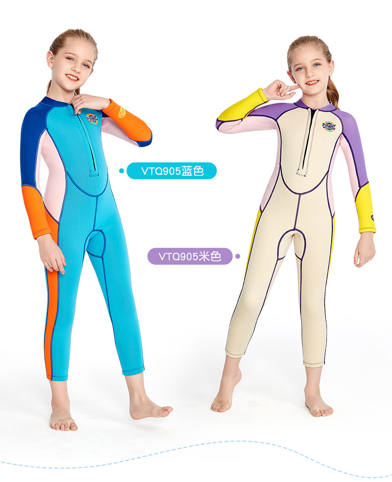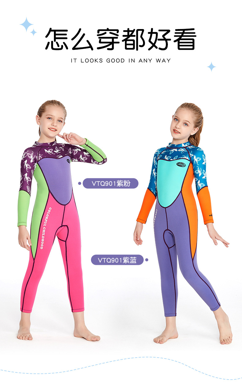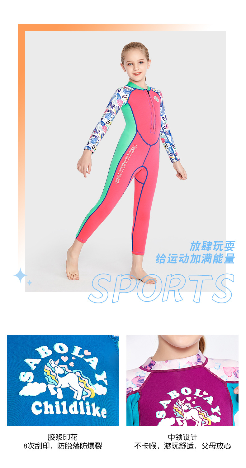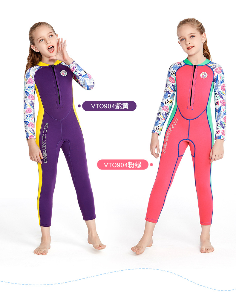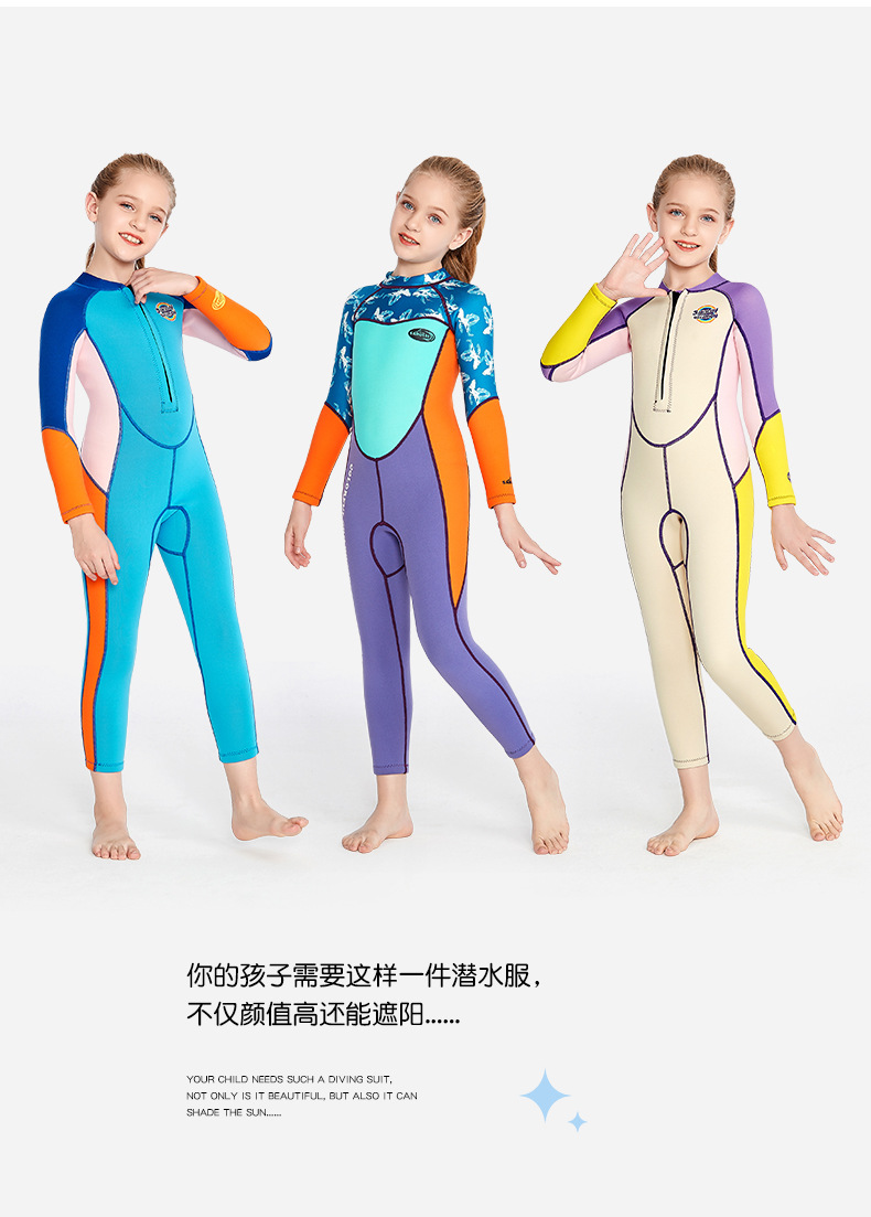가을과 겨울 어린이 2MM 두꺼운 소녀 긴 소매 수영복 선스크린 만화 서핑 어린이 수영복 다이빙 세트