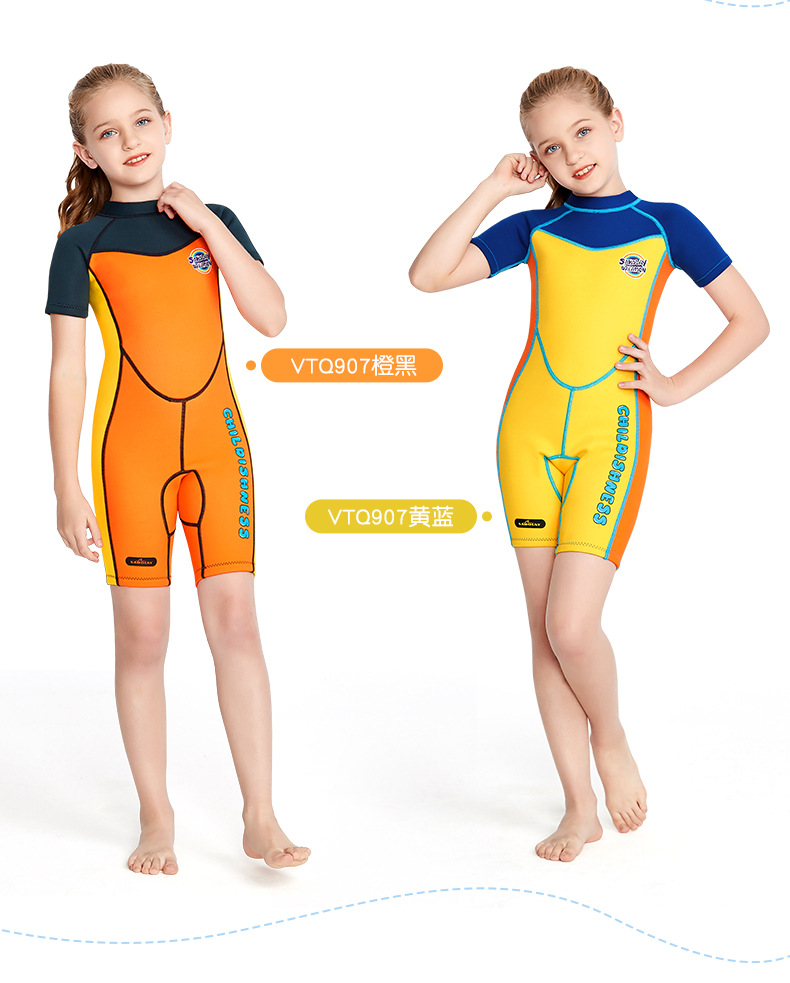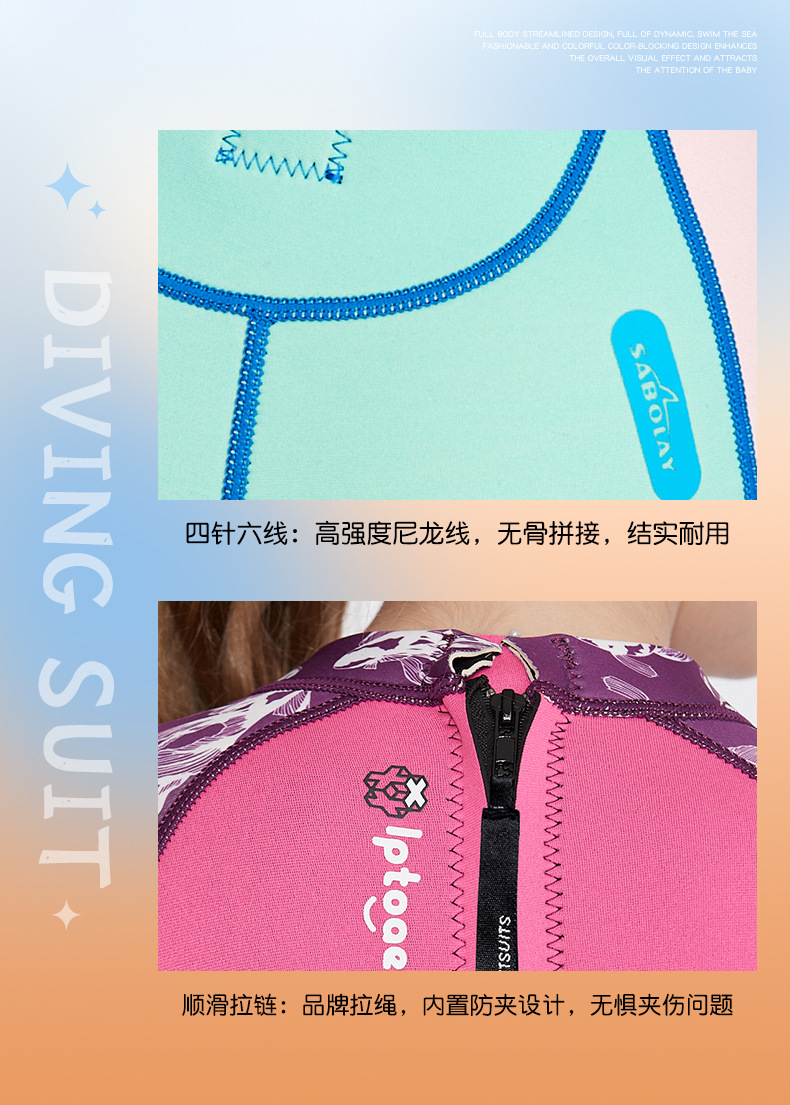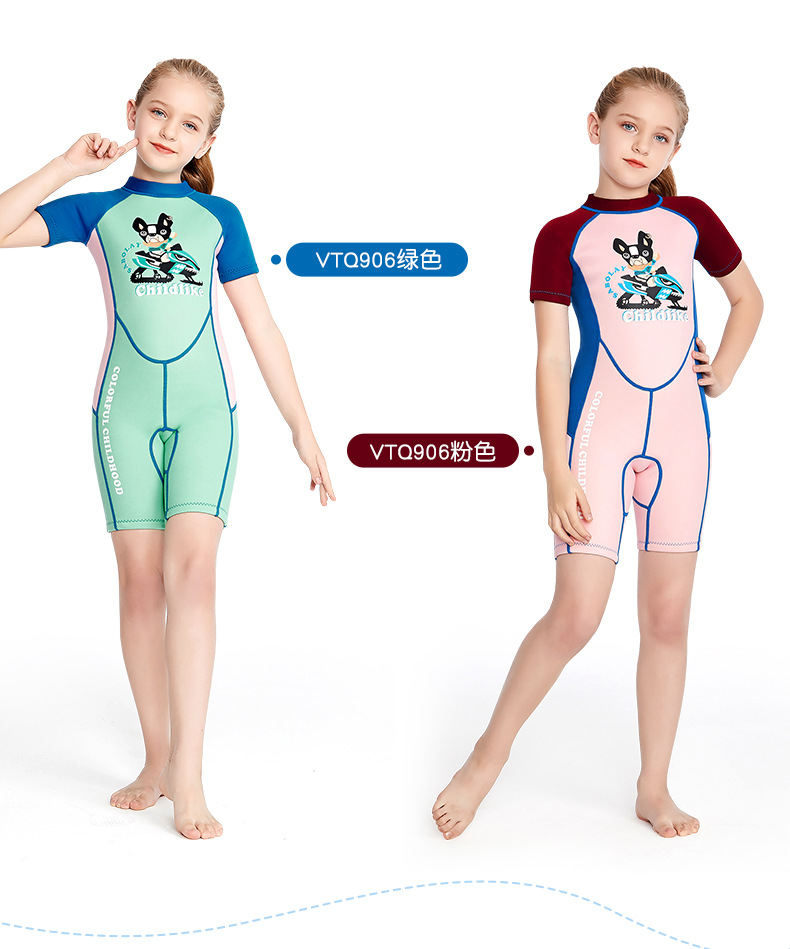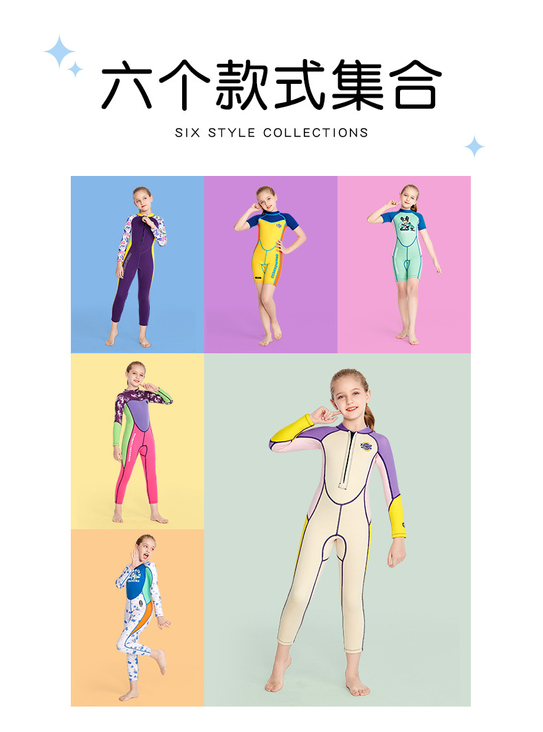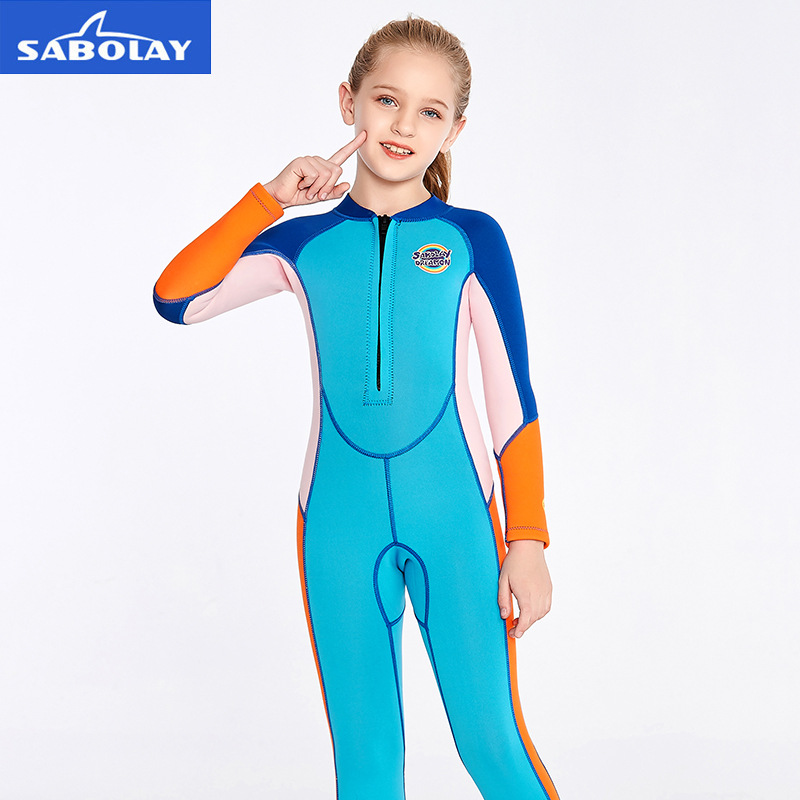가을과 겨울 어린이 2MM 두꺼운 소녀 긴 소매 수영복 선스크린 만화 서핑 어린이 수영복 다이빙 세트