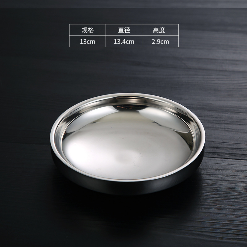 공장 도매 한국 김치 디너 플레이트 더블 스테인레스 디스크 조미료 소스 접시 요리 냉기 스낵 사발