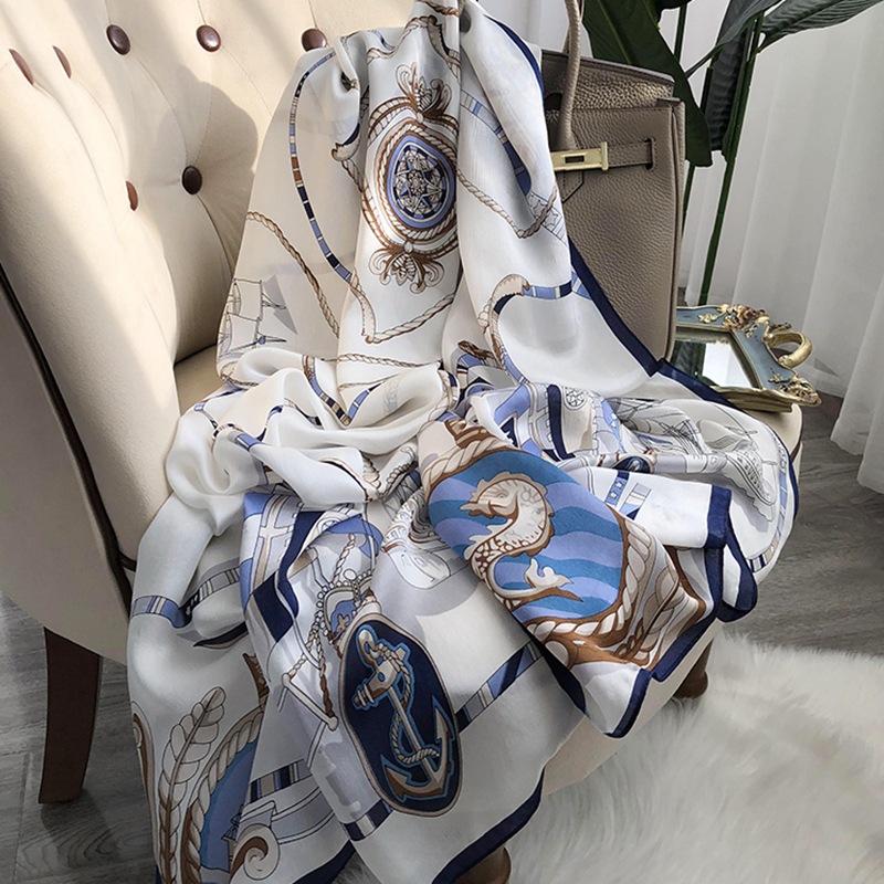 해상 스타일 유럽과 미국 스타일 기질 실크 스카프 여성용 새틴 뽕나무 실크 롱 스카프 숄 도매