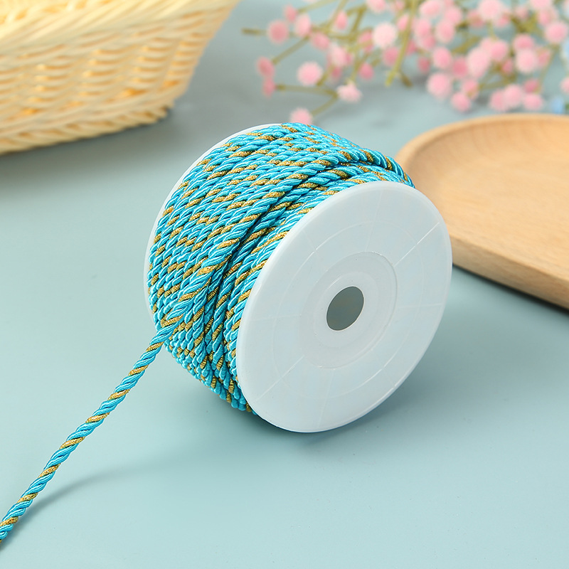 2mm 3mm 폴리 에스테르 플러스 골드 3 가닥 끈 diy 팔찌 컬러 끈 브레이드 컬러 로프 핸드 로프 발찌 도매
