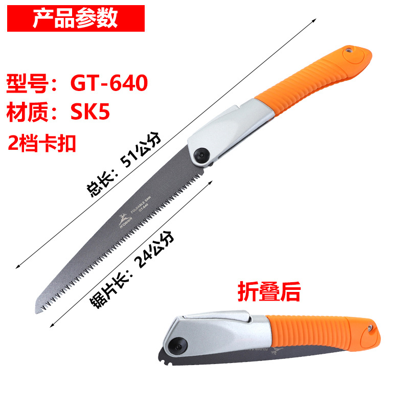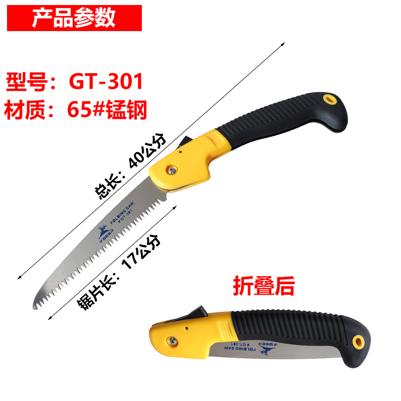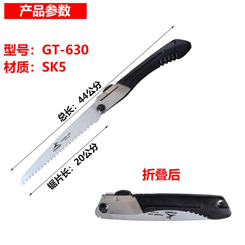 【GT-301 三面磨齿,65#锰钢锯片】;【GT-630高档折叠锯 SK5锯片】;【GT-623铝柄细齿木工锯 65#锰钢锯片】;【GT-639 高档折叠锯 SK5锯片】;【GT-640高档铝柄折叠锯 SK5锯片 二挡卡扣调节】。