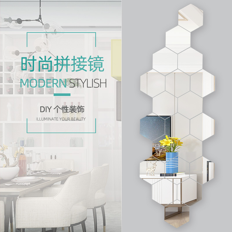 장식용 거울 벽 자체 접착 전체 몸 전체 길이 거울 육각형 배경 벽 스티칭 육각형 인터넷-유명한 소녀 피팅 거울스토어 가기