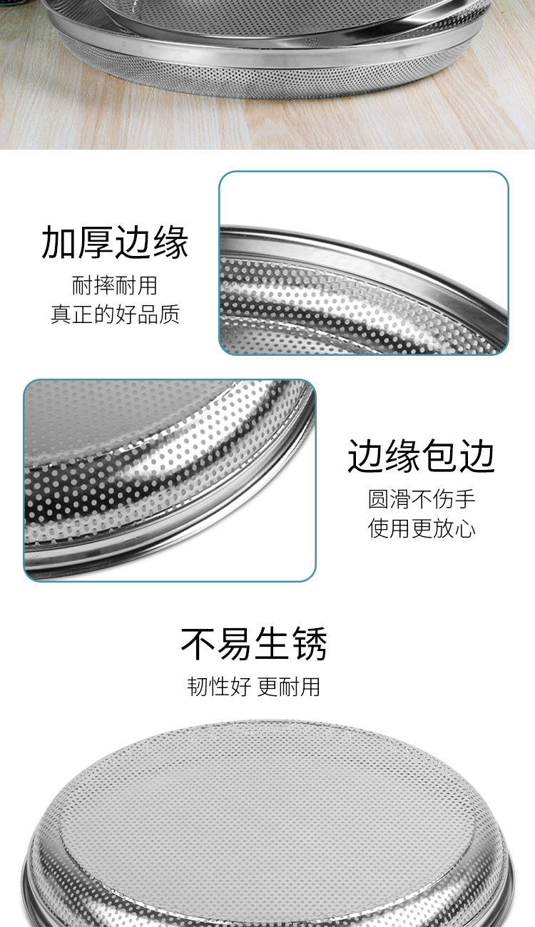 철 체 필터 스크린 스크린 체 표면 분말 체 가정용 쌀 체 무 건조 먼지 팬 건조 것들 배수 물 양재 미세 구멍스토어 가기