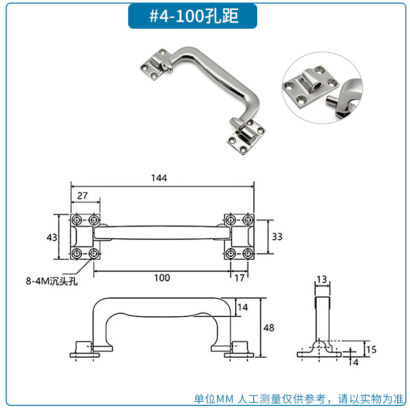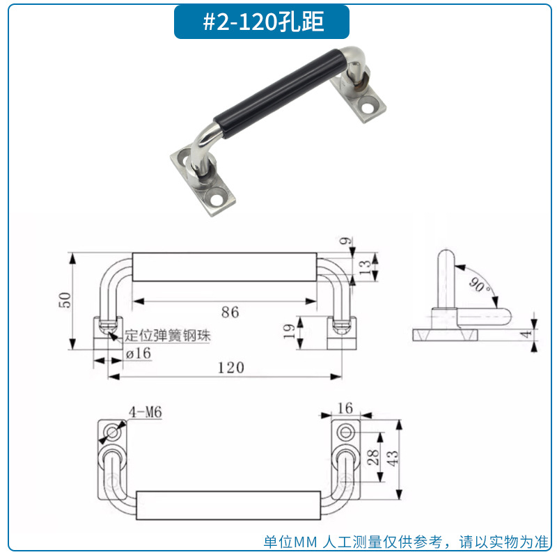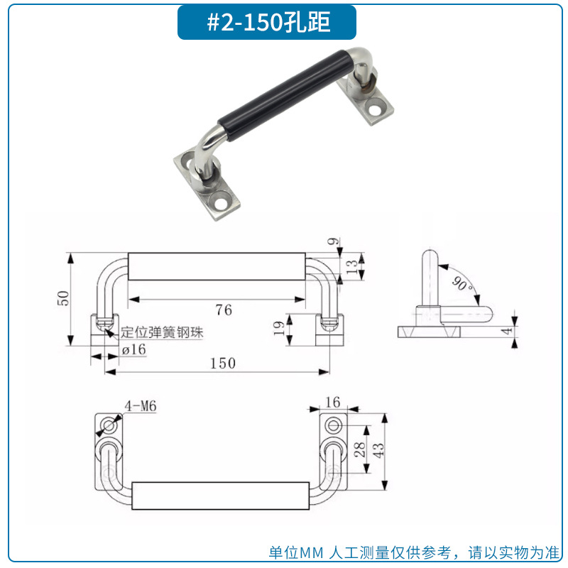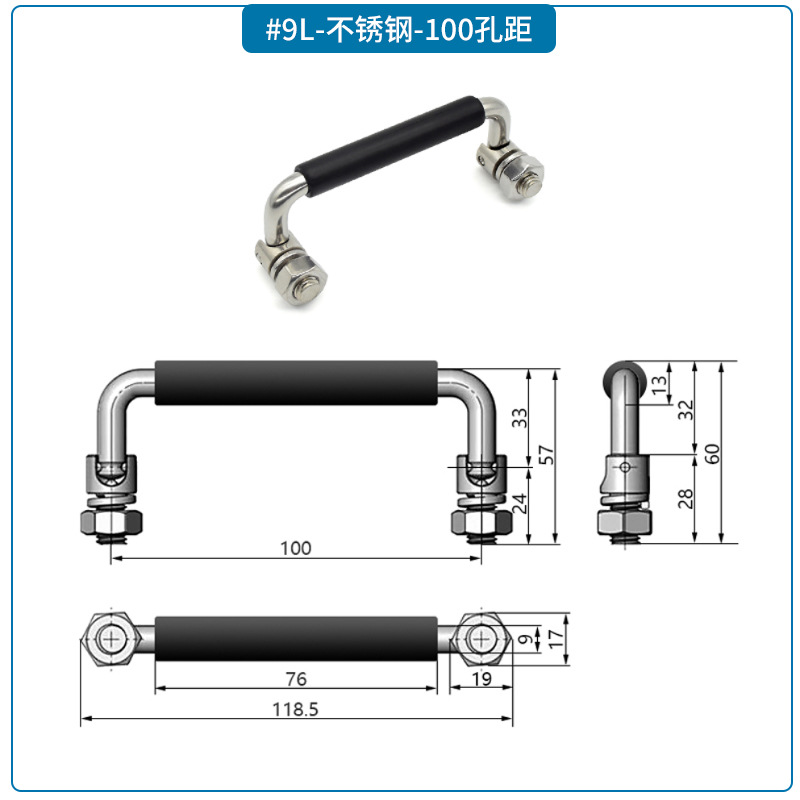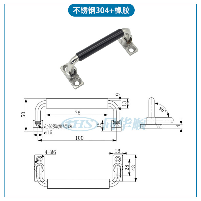 不锈钢折叠拉手LS506重型U型包胶提手 仪器机械工业设备箱柜拉手