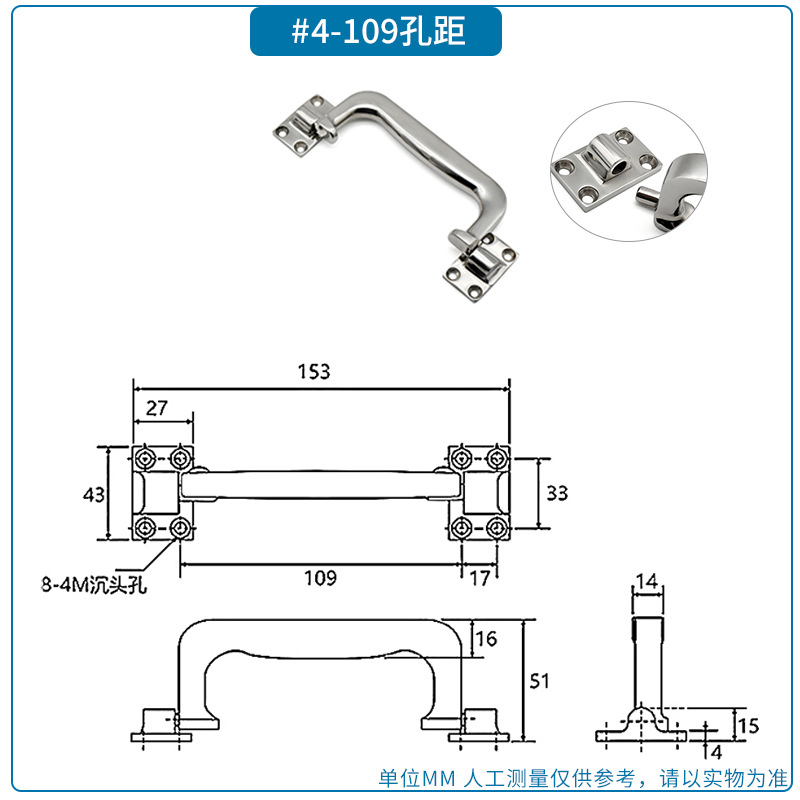 • 【ST610-4-L109】구멍 간격 109 스테인레스 스틸 거울 광택