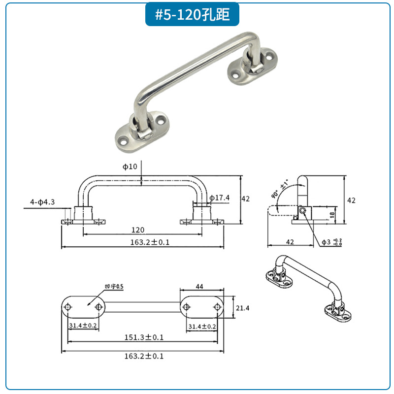 • 【ST610-9L-120】구멍 간격 120 탄소강 크롬 도금