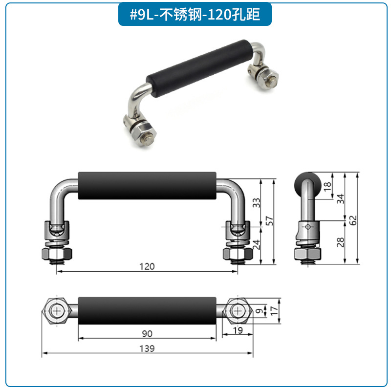 스테인리스 접이식 손잡이 LS506 중형 U형 고무 코팅 손잡이 기기 기계 산업 장비 박스 캐비닛 손잡이스토어 가기
