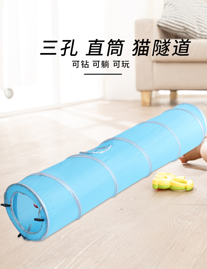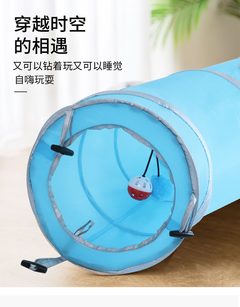 ​ ​ 벨과 공이 있는 새로운 직선형 고양이 터널, 접이식 고양이 장난감, 고양이를 즐겁게 해주는 애완용 고양이 통로