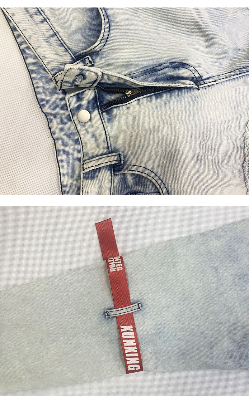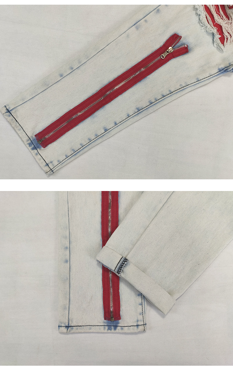 2024 국경을 넘는 유럽과 미국 아마존 남성 패션 패치 웨빙 청바지 찢어진 피트 지퍼 슬림 남성복스토어 가기