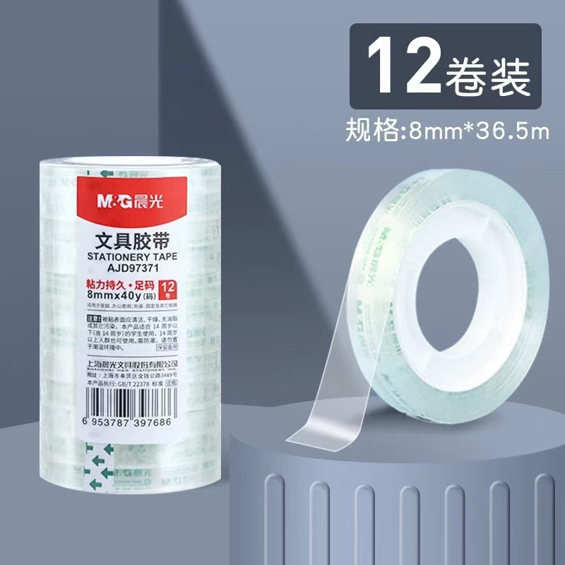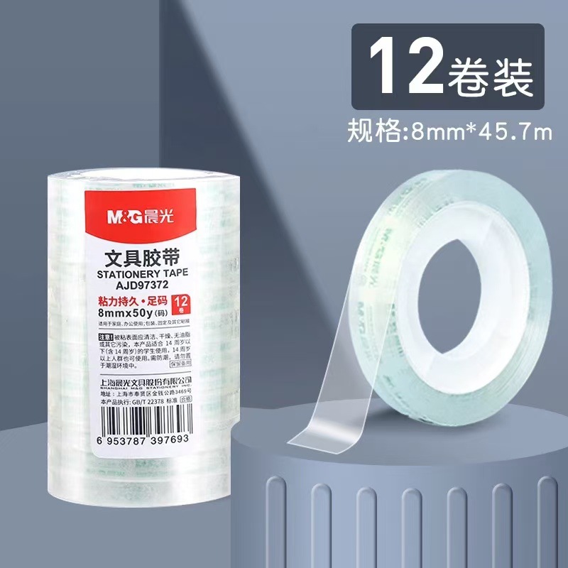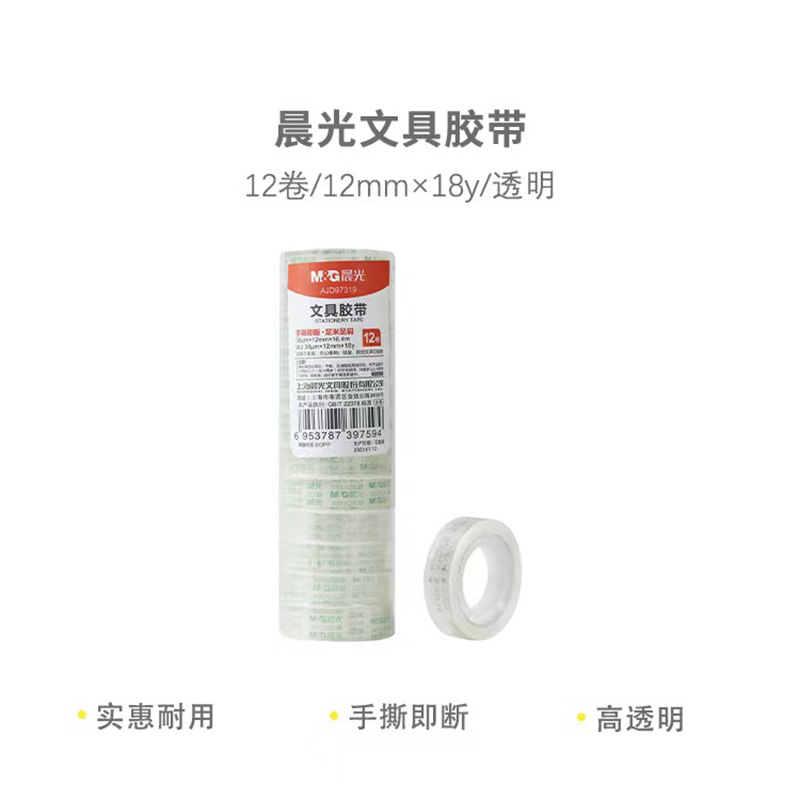 Chenguang 문구 접착제 AJD97325 높은 투명한 손 눈물 문구 투명 테이프 12/24mm 문구 테이프 밀봉 접착제스토어 가기