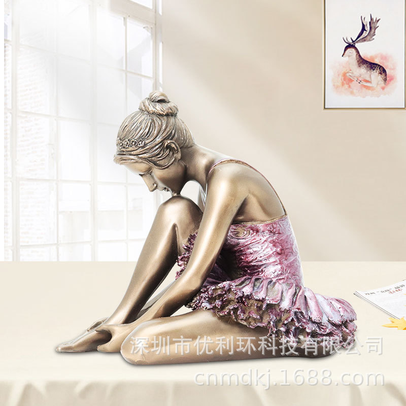 크로스 보더 새로운 콜드 캐스트 구리 공예 거실 침실 사무실 홈 장식 장식품 발레 소녀 동상