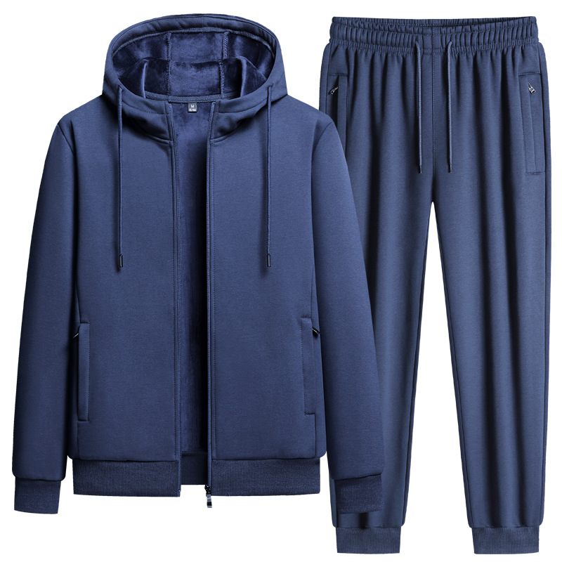 국경 간 교복 남성 캐주얼 스포츠 정장 플러스 벨벳 두꺼운 긴팔 한국식 슬림 코튼 긴 바지 훈련 작업