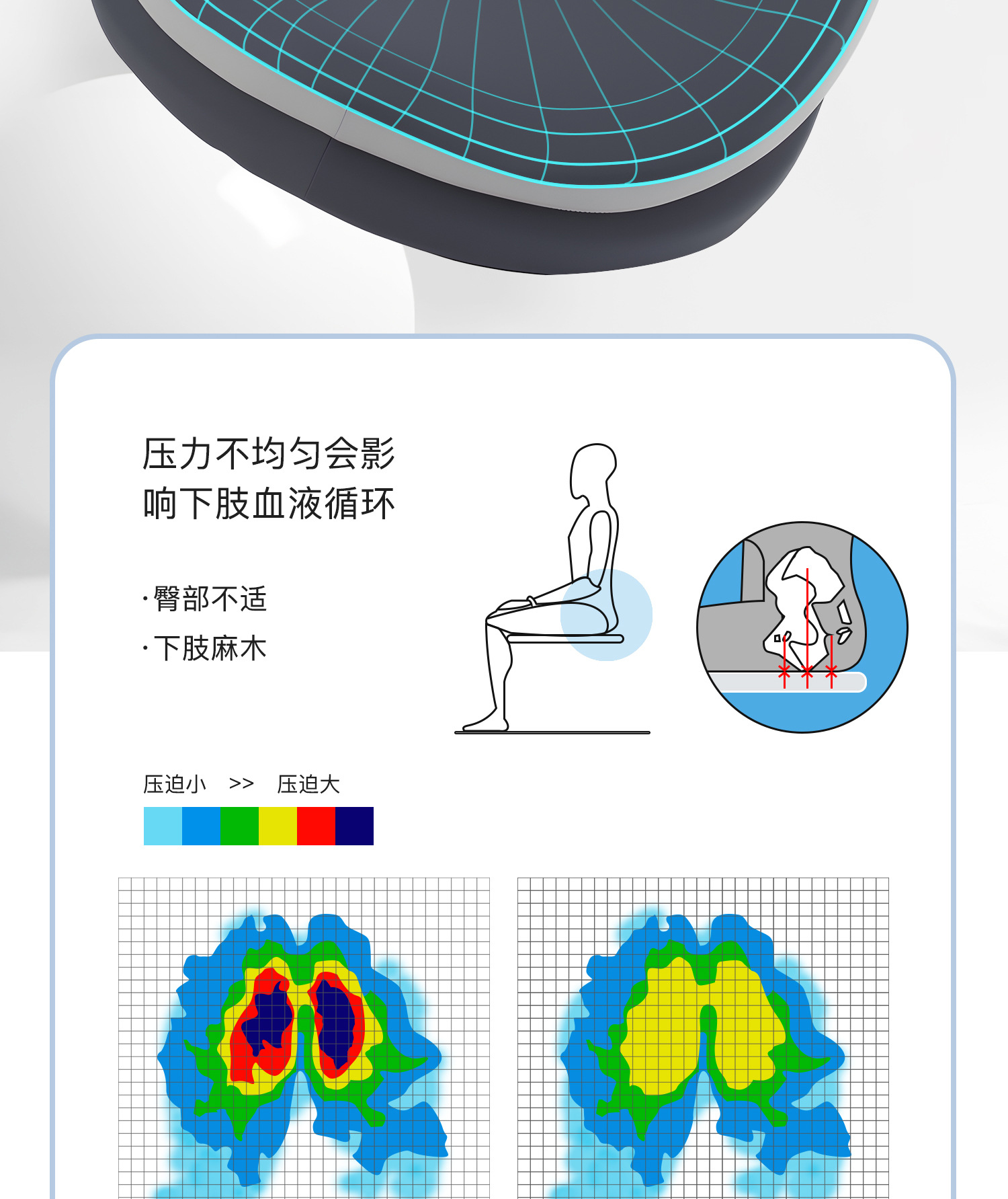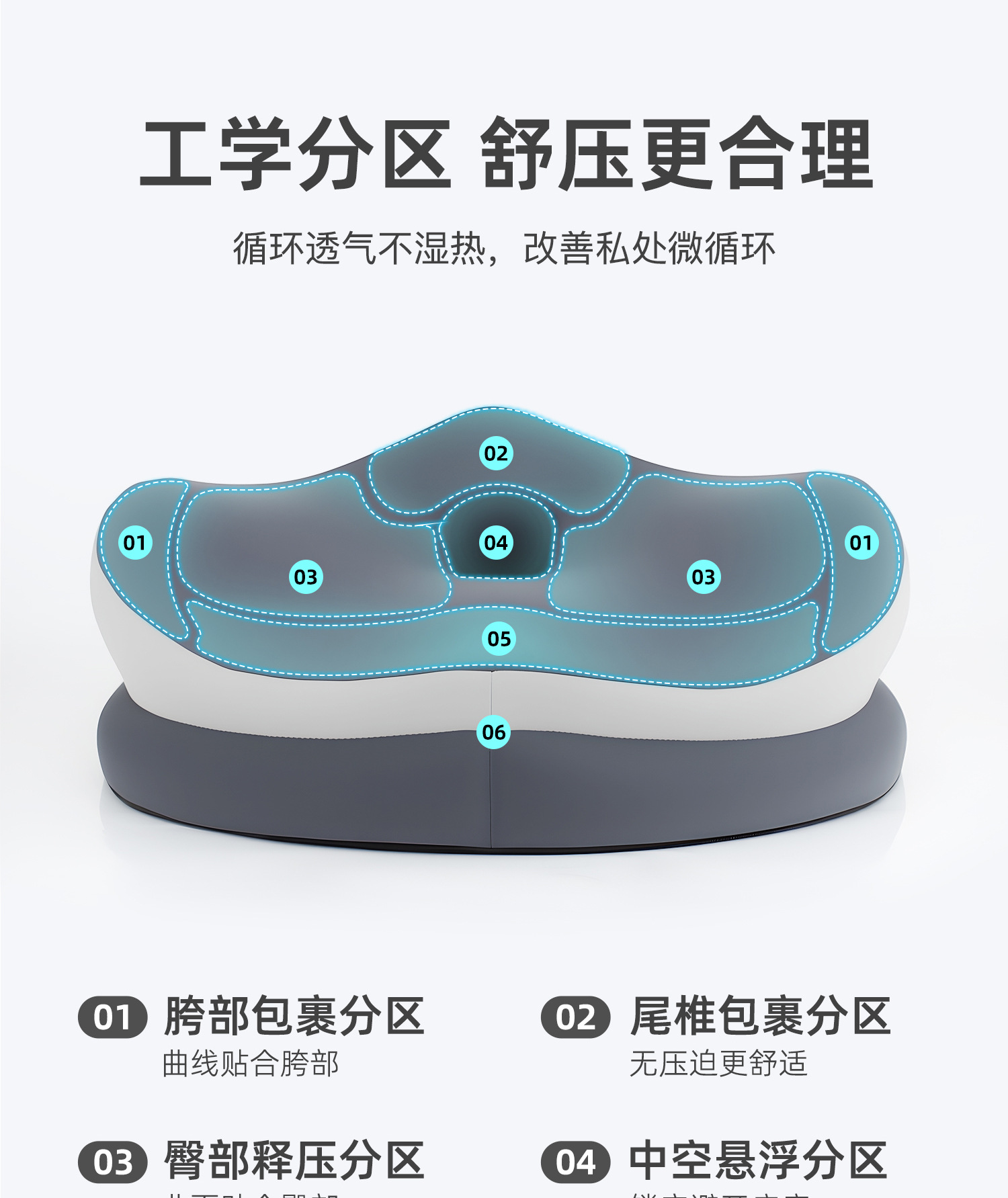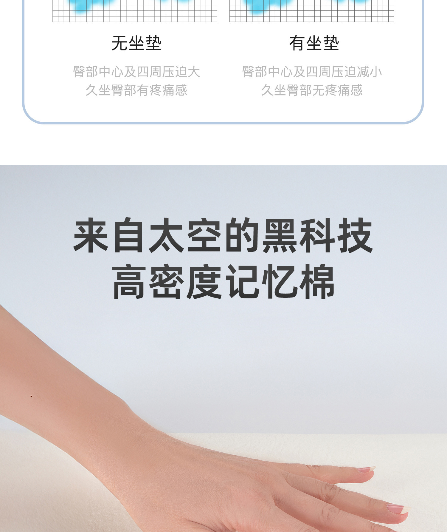 메모리폼 시트쿠션, 치질쿠션, 사무실 장시간 앉아서 무너지지 않는 중공 여름 통기성 방귀쿠션, 허리 및 꼬리뼈 보호 의자 시트쿠션