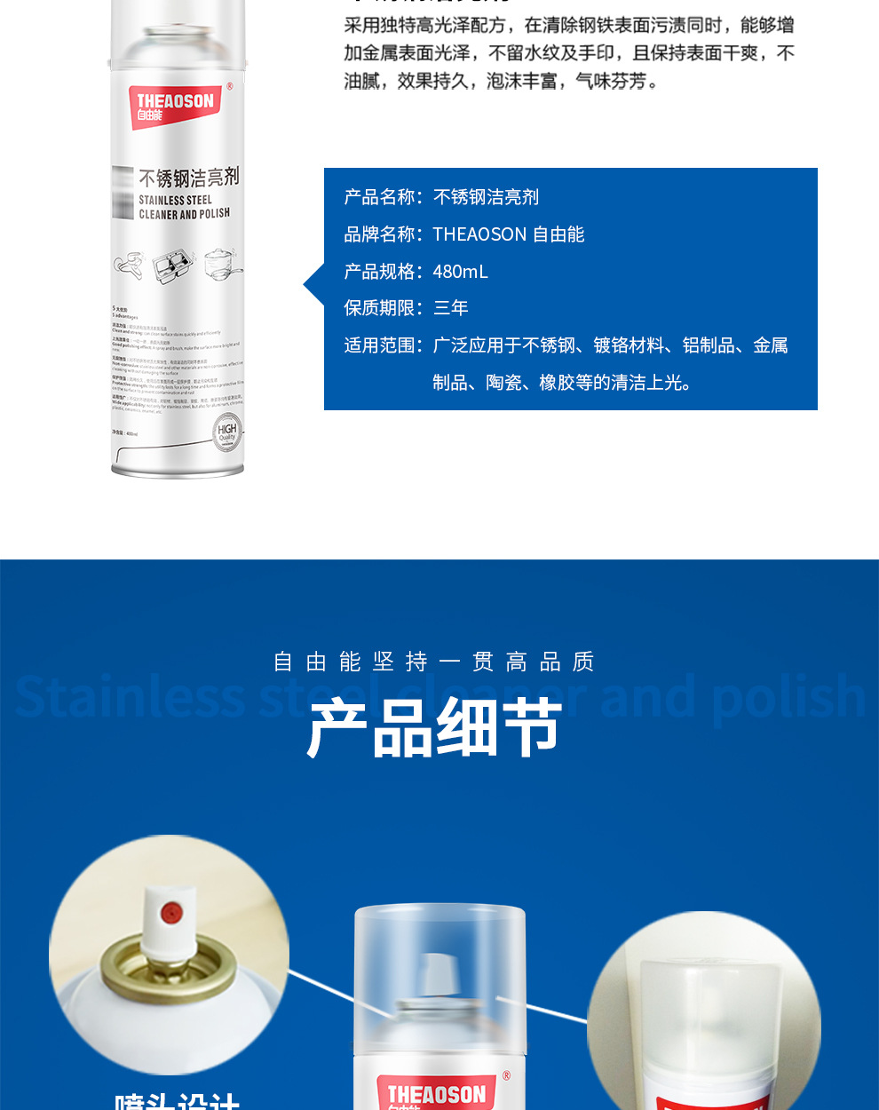 프리 에너지 스테인리스 세정제 스테인리스 관리 청소 광택 유지 표면 손상 없이 복원 480ml